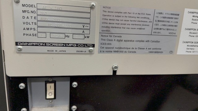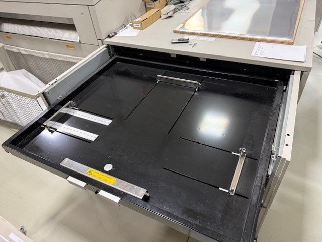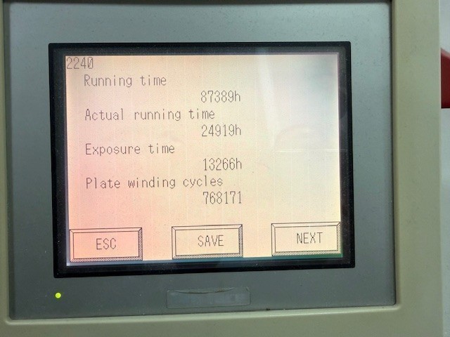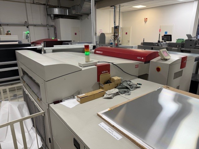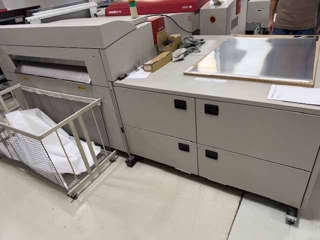 | Description: | Model Avalon N8-50. *upgraded to N8-50XT (Screen PT-R8800)<>Agfa Avalon N8-50 E XT with Apogee workflow (No RIP Included)<>Multi-cassette autoloader<>Agfa Elantrix 125HX<>Stacker PST 480<>Running time 87389 h<>Exposure time: 13266 h<>Plate winding cycless: 768171<>The exposure unit has 2 lasers:<>LD U: 27507 hrs<>LD L: 27507 hrs<>GLV: 9582 hrs<>Technical Description :<>. Light source: GLV head with 512 beams and 830 nm<>. Plate size: (Max 1160 x 940 mm) (Mini 450 x 370 mm)<>. Speed: 42 plates per hour<>. Resolution: 2400 dpi<>. Plate thickness: 0,15 - 0,30 mm |