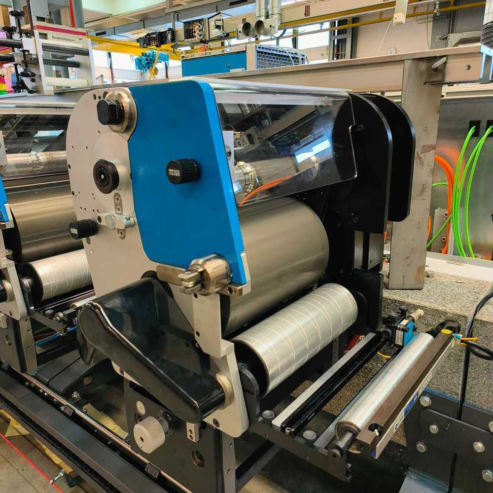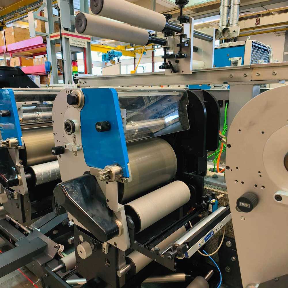 | Description: | Unwinding <>8 x flexo print stations<>8 x GEW UV dryers, GD3<>8 x Chill rolls <>1 Rail system<>1 Cold foil unit <>1 Lamination unit <>1 Print on glue for 2 colors <>Video control<>Register control<>Rewinding unit<>Waste rewind<>1 Rotary die cutting unit<> Chilling machine<>7 x sets of print sleeves with magnetics <>8 Anilox<>WEB guide system<>Corona treater<>Web cleaner |