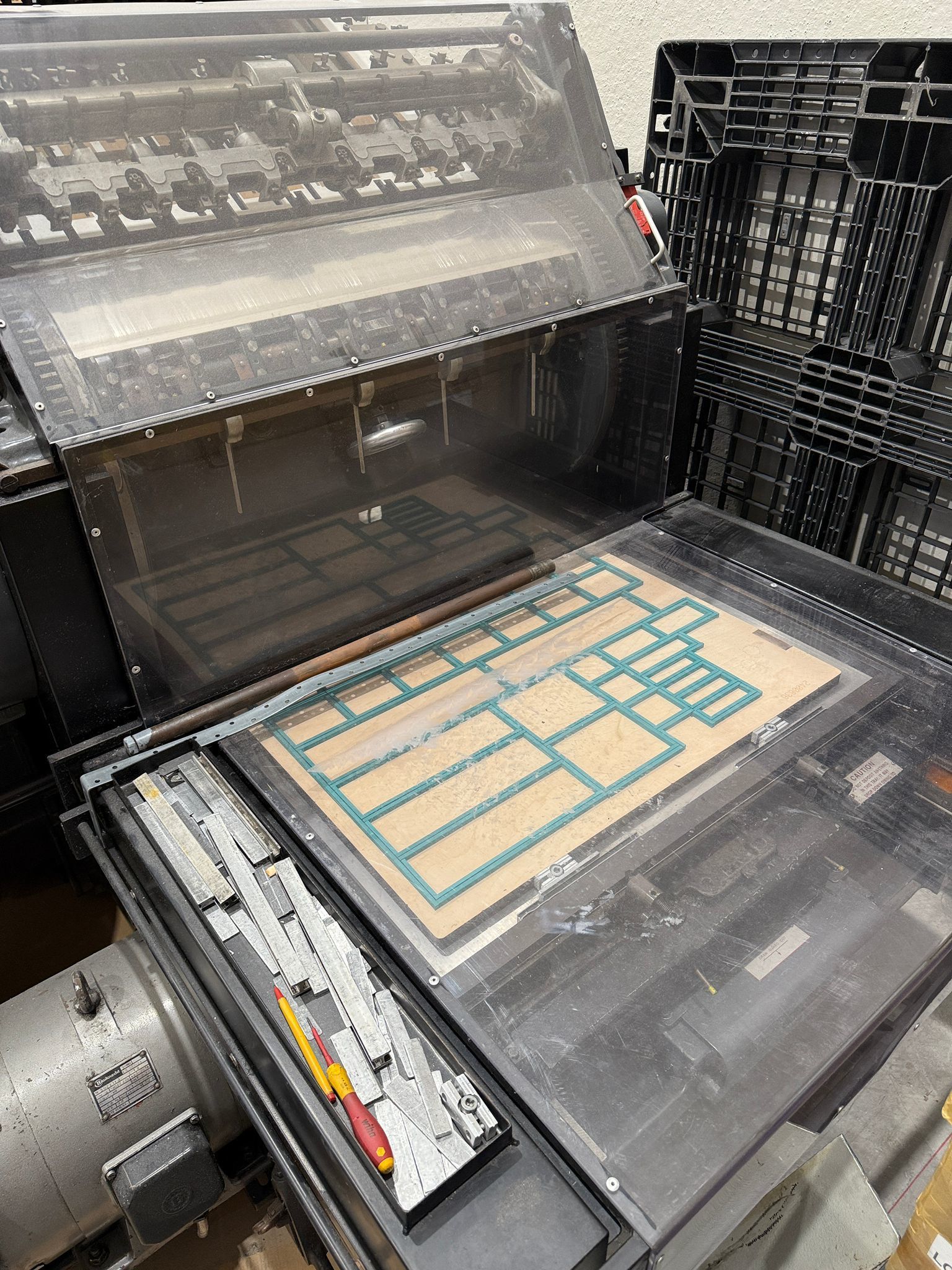 Cylinder converted for die-cutting & creasing<>Standard Machine