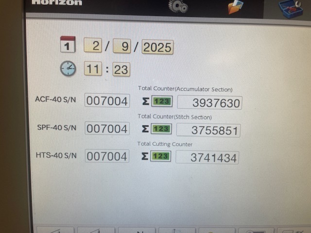 | Description: | 12 station (1 x VAC600Hla + 1 x VAC600Hlm) 6 station tower suction collators<>with touch-screen control, double- and miss-sheet control.<>- ST-40/ST-CV stacker to<>- TB-30<>- Standard stitching head Universal 52/8<>- Ring stitching heads 52/8S, 2 ring stitching heads for StitchLiner Mark III<>- Three knife trimmer unit with hand-feed station<>- CC40-08 Cut-out device for HTS-40, 8 mm<>- SL6PS-40, 6-page control for StitchLiner Mark III<>- PSX-56 Packet dispenser with sheet press<>- PPB-320 Banding machine in conjunction with PSX-56 (minimum compressed air pressure of 8 bar required)<>In stock |