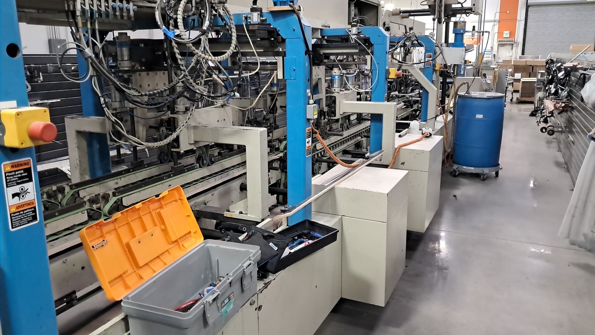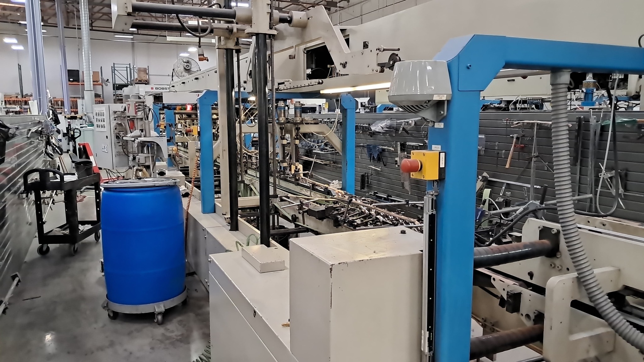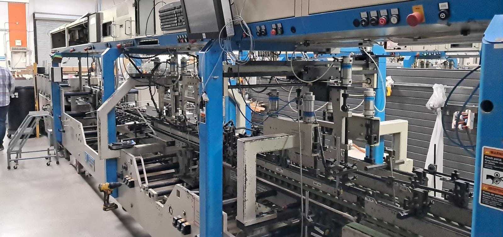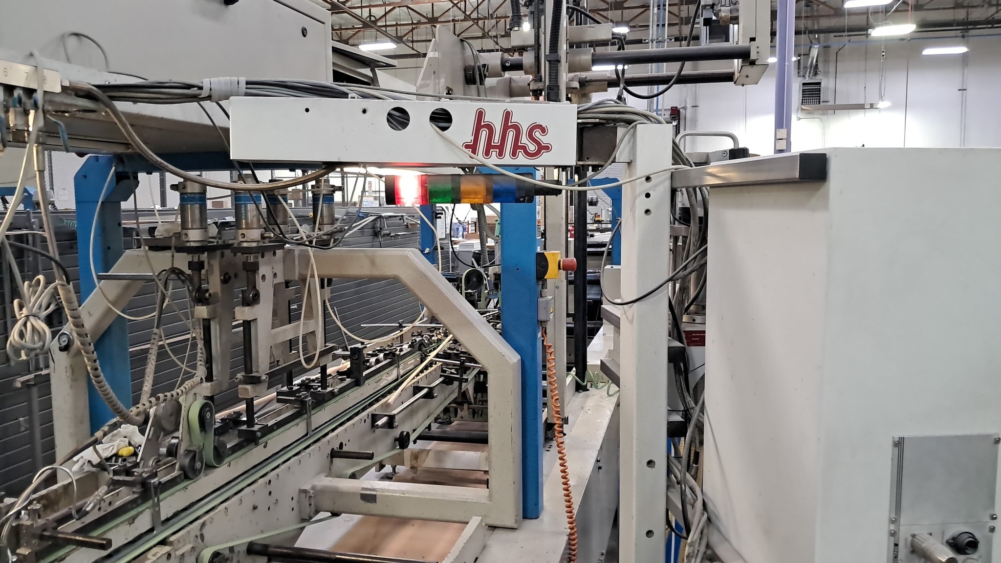 Gluing system HHS COLD<>Max size 45 inch<>6 guns<>6 channels<>Could add hot mill<>glued inserts<>Extra accessories<>StraightLine<>Auto bottom