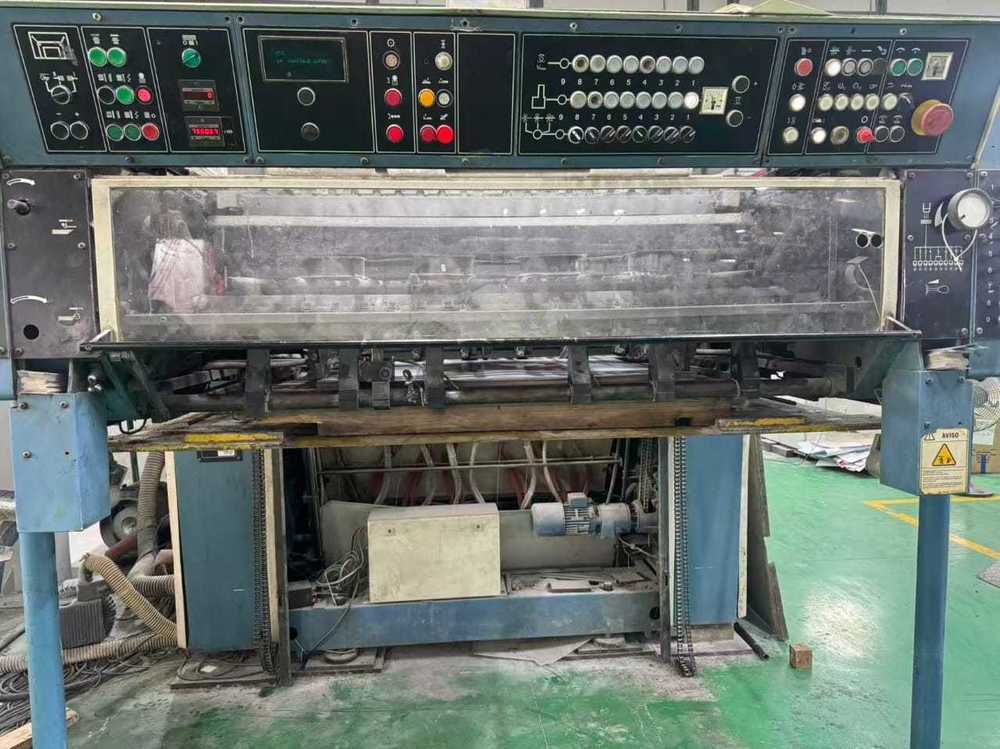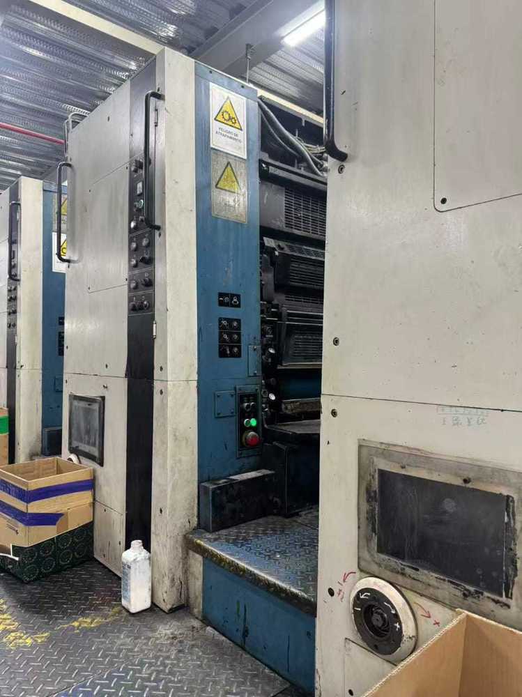 | Description: | Mod. V142-7 + L SW2<>1/6 Perfector + coater; <>7-colours straight + coater<>VARIDAMP alcohol dampening<>Quick action plate clamps<>Cooking register<>Preset - automatic size device<>Infra Red + Hot air dryer<>Powder sprayer<>Coater |