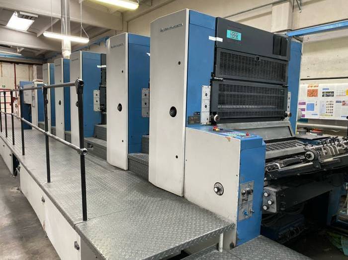 | Description: | Automatic perfecting unit after 2nd unit,<>Colortronic (Register, Dampening and Ink Remote System Control)<>PWHA Semi automatic plate change<>Cooling unit<>Double-sheet control<>Blanket + Roller wash-up device<>Preset - automatic size device<>GRAFIX Hitronic powder sprayer<>Plate bender<>Non-stop delivery<>IR Infra red dryer |