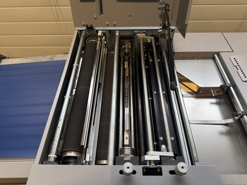 | Description: | Crease and fold sheets up to 0.4mm without cracking - <>Intuitive SmartScreen touch screen control - <>Suction fed top feeder - <>Deep pile 450mm capacity feeder - <>SmartStep table drop - <>6000 sheets per hour - <>Crease only mode - <>Patented flying knife folding mechanism - <>Max sheet size – 385mm x 700mm - <>Creasing blade and matrix guaranteed for life - In-line perforating as standard |