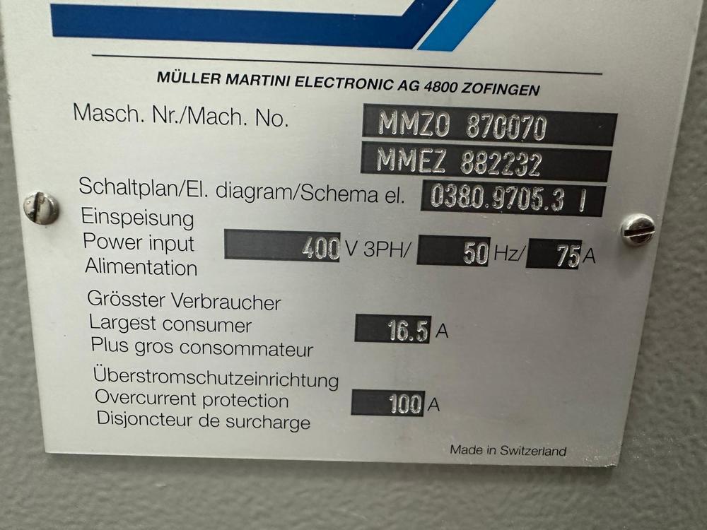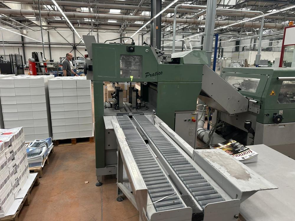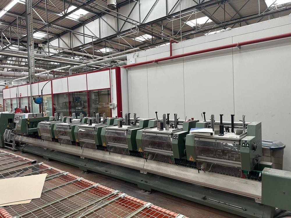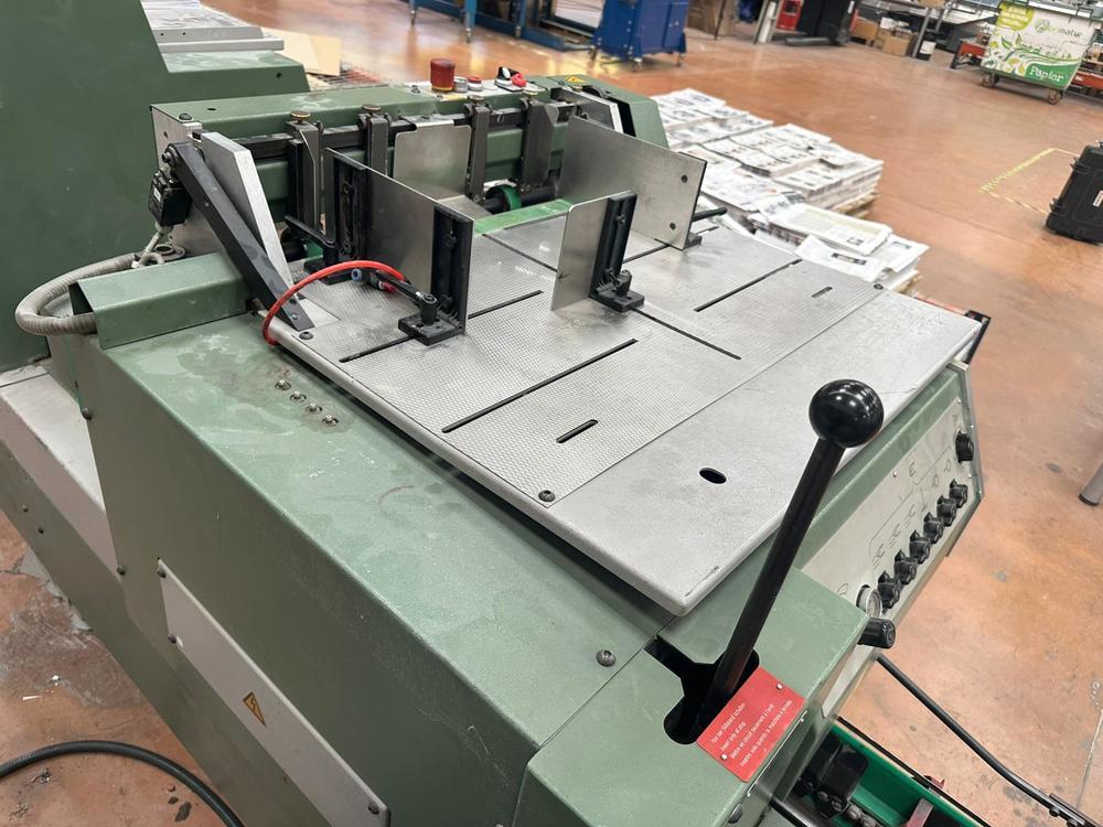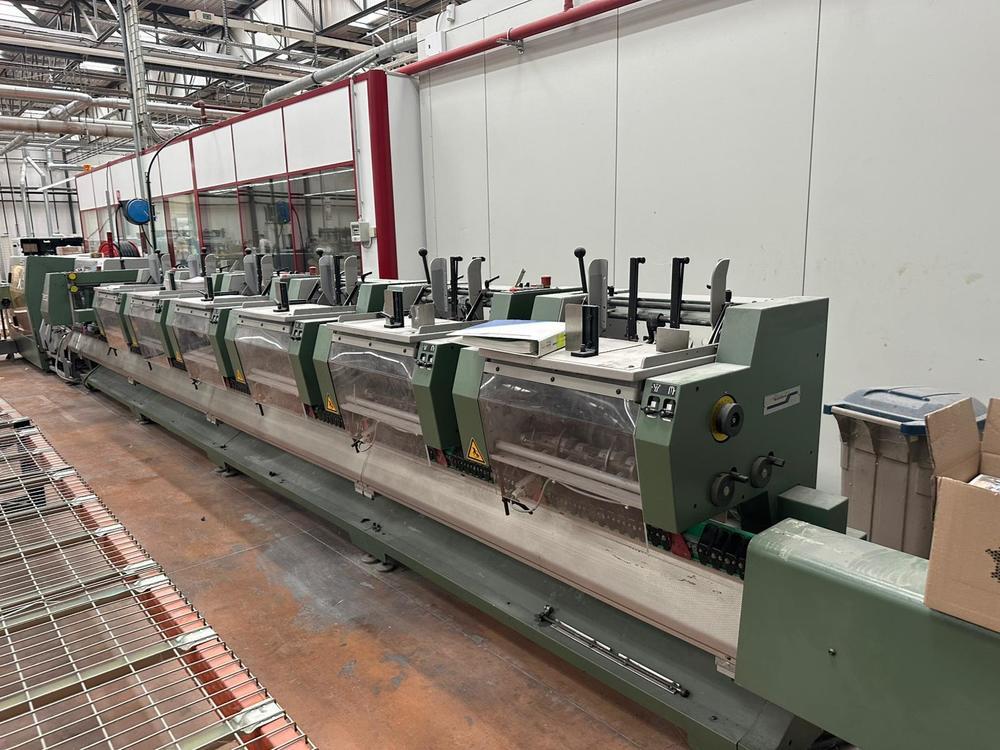 | Description: | Müller Martini BRAVO T Year 2004 <>stitching line <>Handfeed station <>6 x Flatpile feeder Müller Martini Typ: 1555 <>1x Cover feeder Typ: 1529 <>1 x stitching unit Müller Martini Typ: 380 <>2x HK 75 stitching heads <>1 x three knife Müller Martini <>1x Stacker Practico <>Complete with compressor |
