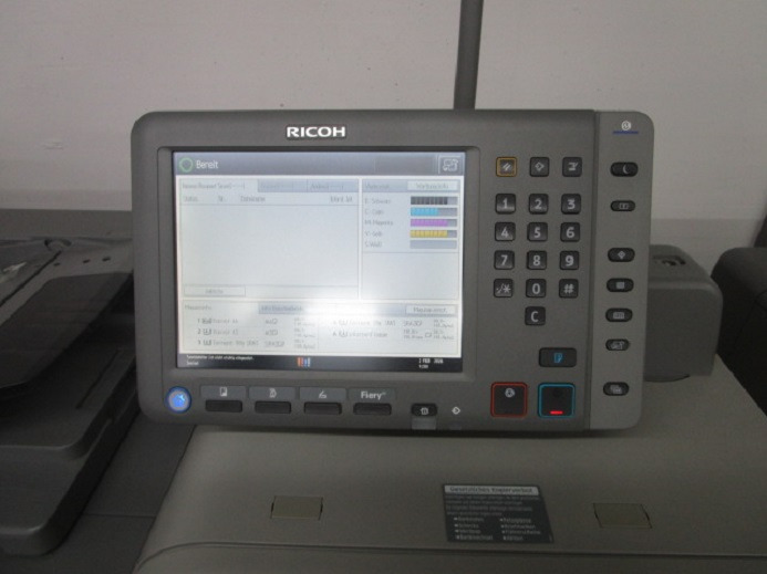 | Description: | ● Colors: 5<>● White printing / Varnish<>● Folding / Stapling / Printing / Scanning & Copying<>● Special banner feeder<>● Original feeder: Capacity up to 220 originals (at 80g/m2) / less than 27mm<>● Paper capacity: Standard 2,500 sheets from 2 paper trays // Optional up to 16,200 sheets from 9 paper trays (including bypass)<>● 5-color system: 5th color station can be supplemented with white, clear & / neon yellow toner<>● Incl. 10.4’ color touchscreen control panel<>● Incl. status light<>● Warm-up time: 300 sec. |