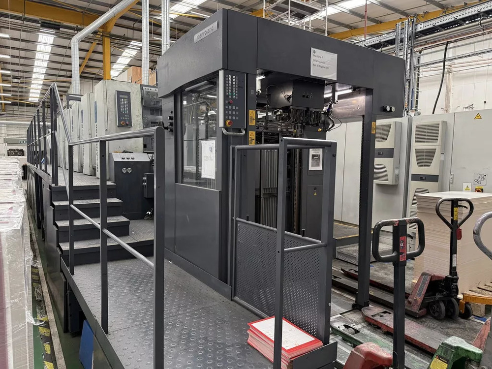 | Description: | Inline ColorPilot IPC (Graphometronic) – automatic colour measurement, control, and register adjustment<> PressPilot Center & IntegrationPilot Plus – centralised press management and workflow integration<> QuickChange Infeed – automated frontlay selection and setup<> QuickChange Air – job-specific air settings via console<> BECKER VariAir Supply System for optimised air control<>Interdeck UV System with interchangeable 2 UV lamps/cassettes<>End-of-Press Drying:<>3 × UV Lamps<> Powder Exhauster Schneider (incl. SCIP)<>ROLANDMATIC dampening system<>APL automated plate loading (full automatic)<>Quick start and LCS software<>Non-stop feeder and delivery<>Electronic double sheet control<>Air Glide delivery<>ELTEX antistatic eliminator<>ITC Ink temperature control<>TECHNOTRANS cooling<>Automatic blanket, roller and impression-cylinder washing device<>Dedicated coater<>Infra Red + Hot air dryer |