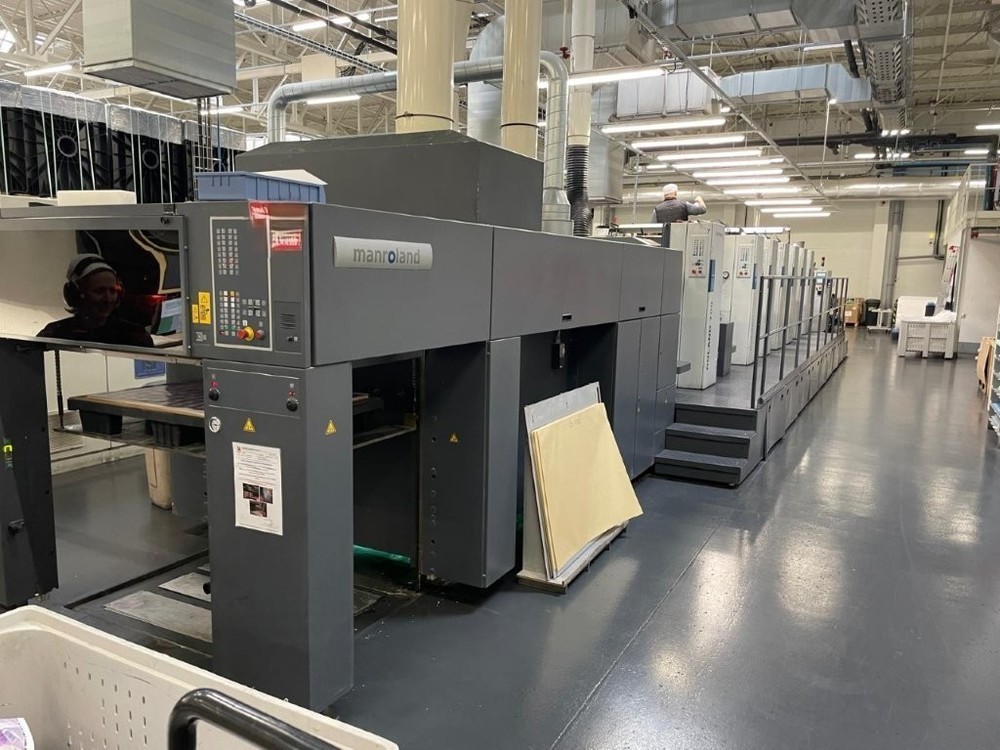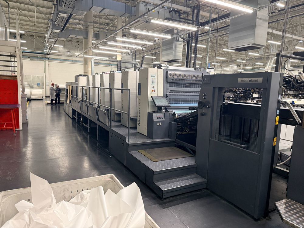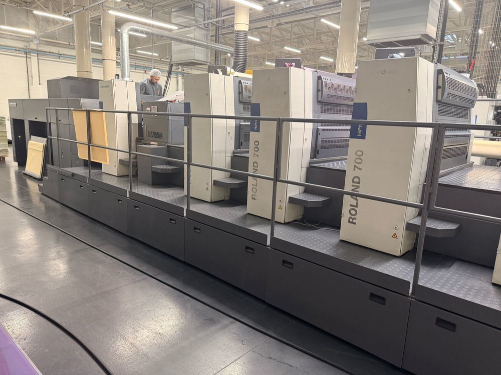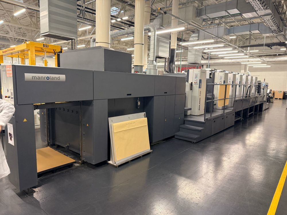 | Description: | Model R 706+TLV HIPRINT HYBRID<>( 6 colors straight - unit T (Dryer) - unit L (coater) - unit V (Extended delivery)<>Inline Color Pilot (Inline measurement system)<>RCI Ink and register remote control<>Plastic-Foil package<>Antistatic device<>APL Plate change (Fully auromatic plate change)<>R.Deltamatic damping<>Technotrans Combi Cooling Device<>Ink Temperature Control<>Technotrans Ink mate<>LCS<>Quick change surface<>Auto Ink roller wash<>Auto Blanket Wash for conventional and UV<>Auto Impression Cylinder Wash<>Non-stop feeder & delivery<>Preset<>Diagonal Register<>Ink mate agigators<>1x Interdeck UV IST drying ( 1-6 movable position)<>Anilox Coater with Tressu Chamber Doctorblade<>Quick change clamp<>Extended delivery<>Anilox Coater<>I/R Dryer + Hot air and U/V IST dryer end of press <>Air Glide Delivery<>Powder Spray<>Telepresence<>Inline reel-sheeter for paper rolls<>Max sheet size: 740 x 1.040 mm<>Output: 16.000 sheets per hour |