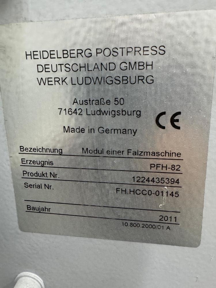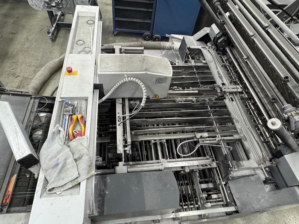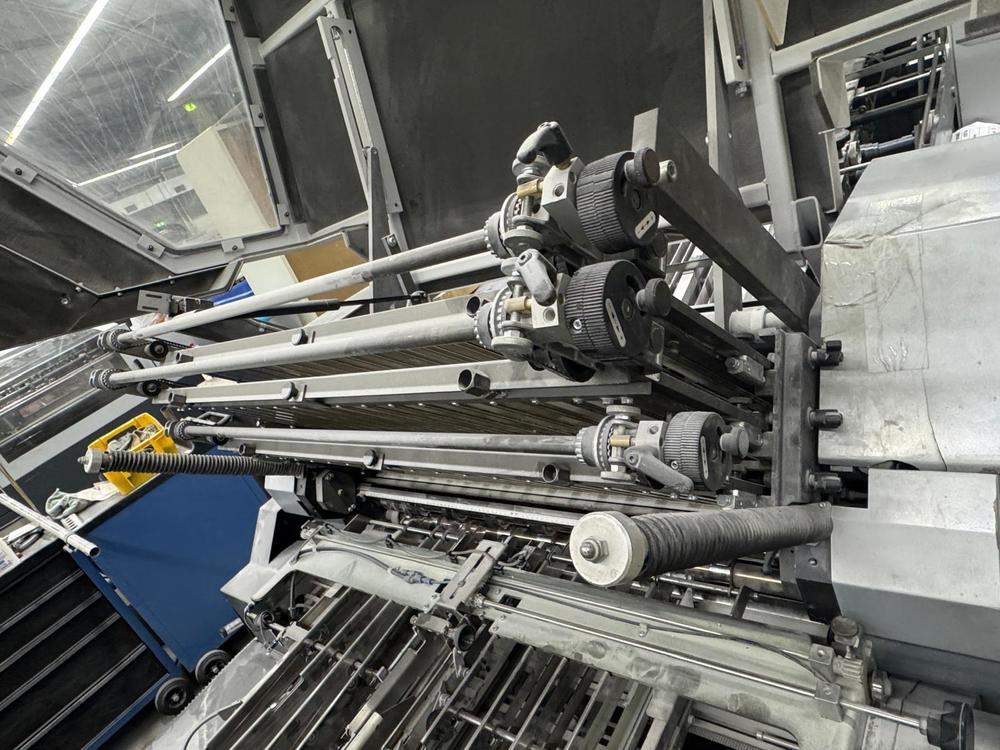 | Description: | Model KH 78/82-6 KL<>16 Page folding machine<>Pallet feeder: PFH-82<>Tremat<>Pump<>MCT Touchscreen<>Front mounted perforation shaft<>Parallel fold unit with 4 buckle plates: BUH-82<>Perforating shaft<>cross fold: CAH-82<>Noise hood over the entire folding section<>Twinstacker TSH-50 Delivery<>Max sheet format 780/820 x 1200 mm<>Min sheet format 140x180 mm |