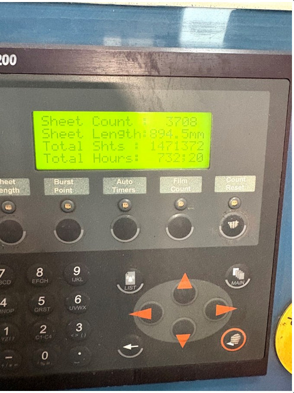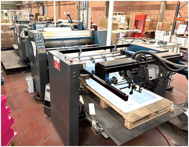 | Description: | less than 1.5 million sheets!<>Heidelberg deep pile suction feeder with back separation<>250mm (10) diameter highly polished chrome laminating roller<>Laminating nip pressure up to 6 metric tonnes<>Film is mounted on a quick change air shaft<>Trim slitter and perforating mechanism<>Pneumatic clutch ensures precise film tension<>Swiss made temperature control unit<>Sheeter – Integral bump roller separator with anti-curl bar<>Pallet delivery table.<>Accessories:<>Ioniser Pro static eliminator. |