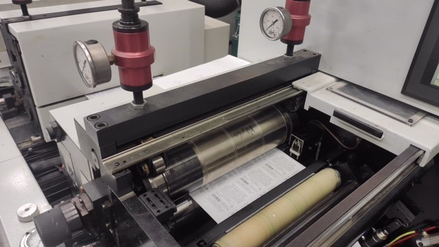 | Description: | 1 hot foil stamping unit<>1 embossing unit<>Camera control<>rollers changed |
