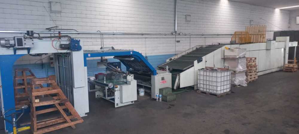 | Description: | Vertically motorised head and brushless motor transmission;<>Automatic upper sheet feeder unit complete with: vacuum pump, automatic lift with brushless motor for raising/lowering the pallet, independent motorisation 90 cm wide cover transport belts.<>Connecting bridge and conveyor belts for transporting sheets from the feeder to the coupling machine;<>Cardboard feed unit with 6 suction belts with speed adjustable via touch screen<>Coupling unit for cold vinyl glue: Machine edge system;<>CARDBOARD FEEDING UNIT (MTI)<>This unit allows the lower dencarton to be fed in by means of a synchronised brushless stepper motor<>synchronised with the coupling unit<>The length of the sheet is adjusted by the touch screen<>The MTI consists of 6 belts complete with suction device, thus allowing better introduction of the sheet into the coupling unit.<>GLUE COUPLING GROUP<>All rollers are mounted on ball bearings.<>The gluing roller is made of chrome-plated and ground steel, allowing for perfect glue distribution and low glue consumption.<>The speed of the rollers can be adjusted from the touch screen.<>During machine stops and breaks, the glue rollers continue to rotate thanks to a separate motor that keeps the glue fluid.<>The Fast Linear 165 bundle maker consists of Bundle forming unit: Bundle turning unit, Non-stop high-stack stacker unit with pneumatic levellers: Pneumatic levellers with automatic positioning; Metal walkway for operational control of the unit (bale former, stacker<>stacker. Fully automatic positioning of the format both in width and length: Machine edge system:<>NO-STOP HIGH-STACK STACKER GROUP: This unit eliminates the need for manual collection of the finished product (coupled sheets) by the operator, thus eliminating the risk of awkward postures and manual handling of loads. |