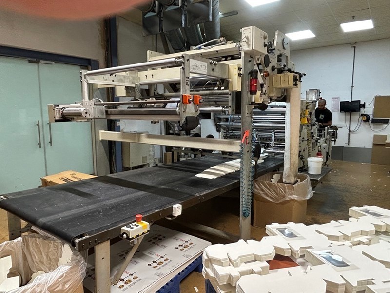 | Description: | Mod. WPS 1100-1<>Double lane feeding<>Die cutting station<>Heated unit for scoring |