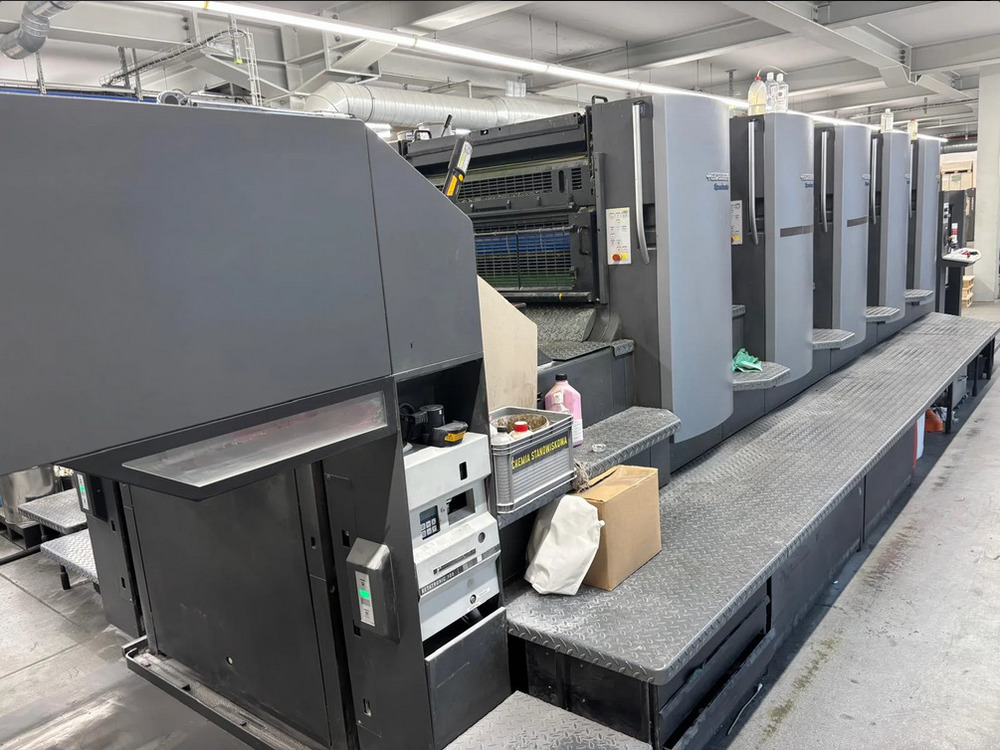 | Description: | Wallscreen<>Intellitrax 2<>Alcolor automatic Film Dampening<>CP 2000 Control Center<>TECHNOTRANS<>ITC Ink temperature control<>Automatic blanket, roller and impression-cylinder washing device<>Ultrasonic double sheet control<>Antistatic complete<>Preset - automatic size device<>IR Infra red dryer<>High pile delivery<>GRAFIX Exactronic Plus powder sprayer |