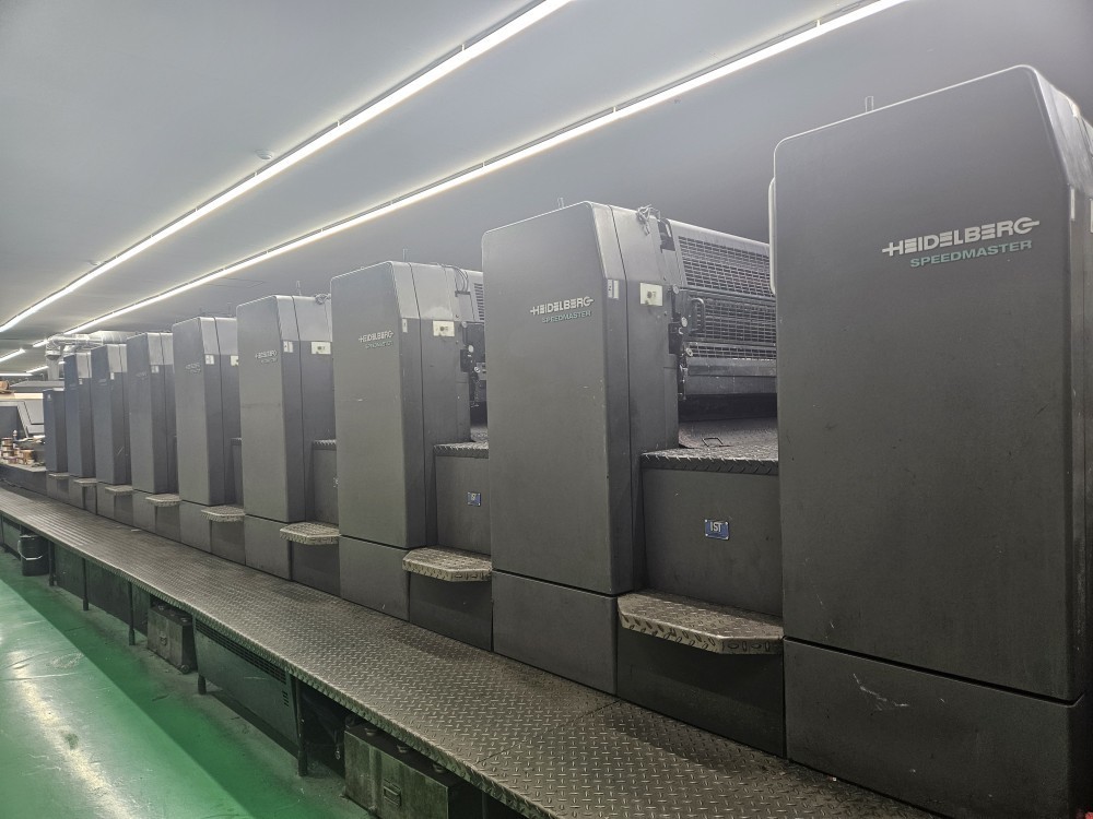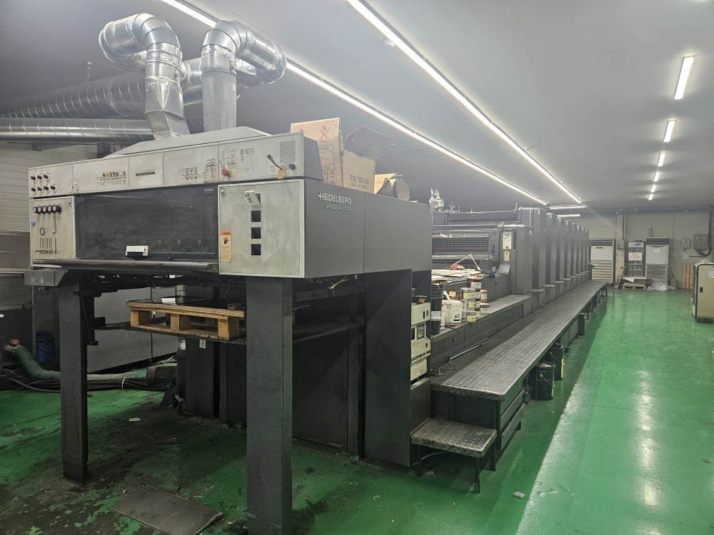3 x IST UV in Delivery<>4 x Interdecks<>Electric Plate Punch<>Alcolor automatic Film Dampening<>Autoplate (semi-automatic plate loader)<>CP 2000 Control Center<>Preset - automatic size device<>BALDWIN refrigeration + recirculation<>ITC Ink temperature control<>Automatic wash-up device<>Grafix powder sprayer<>Extended Delivery<>anilox coater