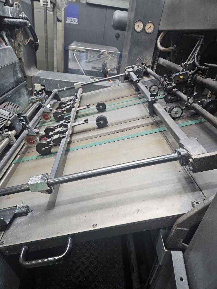 | Description: | 3 x IST UV in Delivery<>4 x Interdecks<>Electric Plate Punch<>Alcolor automatic Film Dampening<>Autoplate (semi-automatic plate loader)<>CP 2000 Control Center<>Preset - automatic size device<>BALDWIN refrigeration + recirculation<>ITC Ink temperature control<>Automatic wash-up device<>Grafix powder sprayer<>Extended Delivery<>anilox coater |