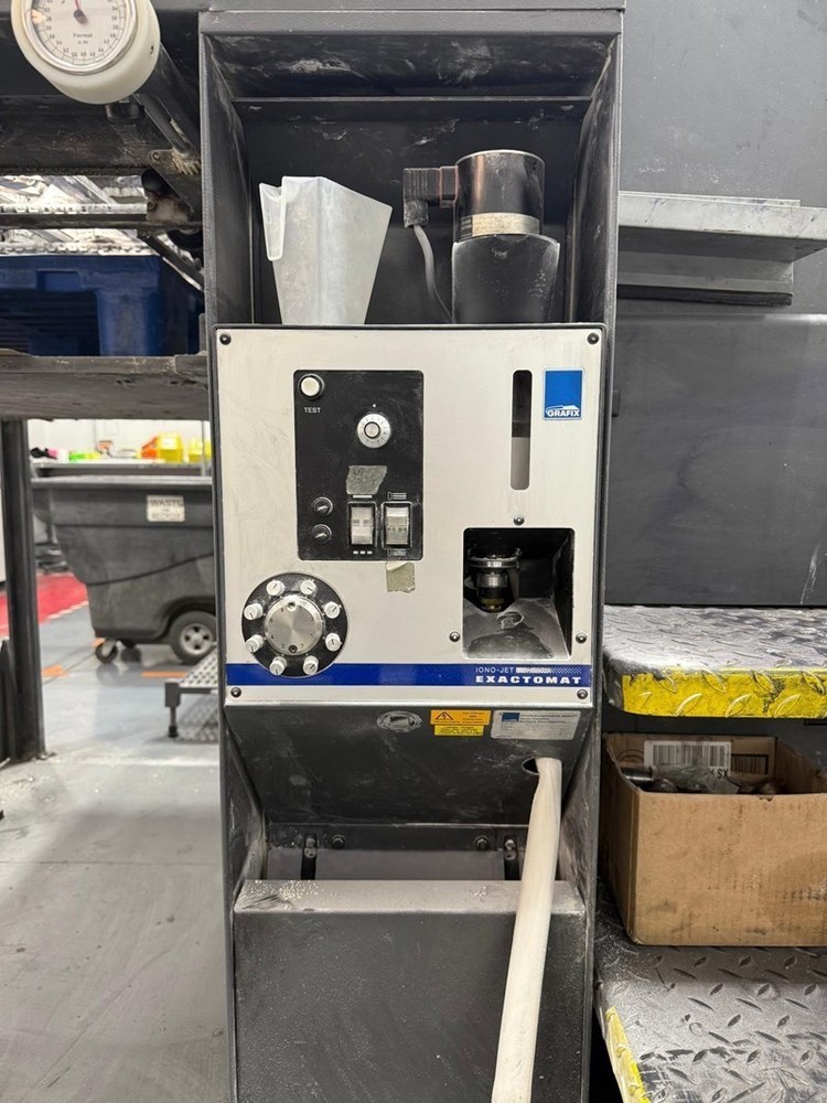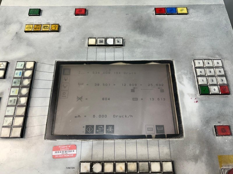 | Description: | Alcolor automatic Film Dampening<>CPC1-03 Ink and register remote control<>CP-Tronic self diagnostic, control and monitore console<>GRAFIX IR dryer<>Grafix powder sprayer<>TECHNOTRANS cooling + circulation unit<>Partly overhauled |