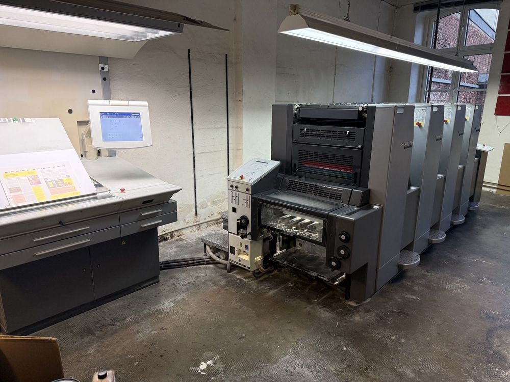 | Description: | Pull lay control in Feeder<>Technotrans alpha.d dampening and cooling solution<>Intermediate roller control<>Standard Pile delivery<>Sheet slow down device in delivery<>Alcolor automatic Film Dampening<>Autoplate (semi-automatic plate loader)<>CP 2000 Control Center<>Sheet decurler<>GRAFIX Alphatronic 200 powder sprayer<>Automatic blanket and ink roller wash unit<>Plate bender<>Plate punch |