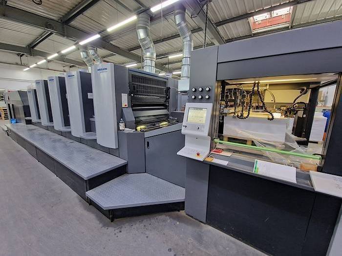 | Description: | PRINECT PRESS CENTER - <>WALLSCREEN - <>IN-PRESS CONTROL -<>INSTANT GATE - <>COLOR ASSISTANT PRO - <>MACHINE SPEED 16.500 EX/H - <>TECHNOTRANS COMBISTAR BETA C CABINET –<>AIR COOLED -<>ALCOLOR VARIO dampening system<>Coater<>Chambered doctor blades<>Autoplate Pro (full automatic plate loader)<>Preset Plus in feeder and delivery<>Clean CleanStar powder sucker<>Automatic blanket, roller and impression-cylinder washing device<>ITC Ink temperature control<>Weko AP500 Powder Spray<>HEIDELBERG Drystar infra-red dryer + hot air |