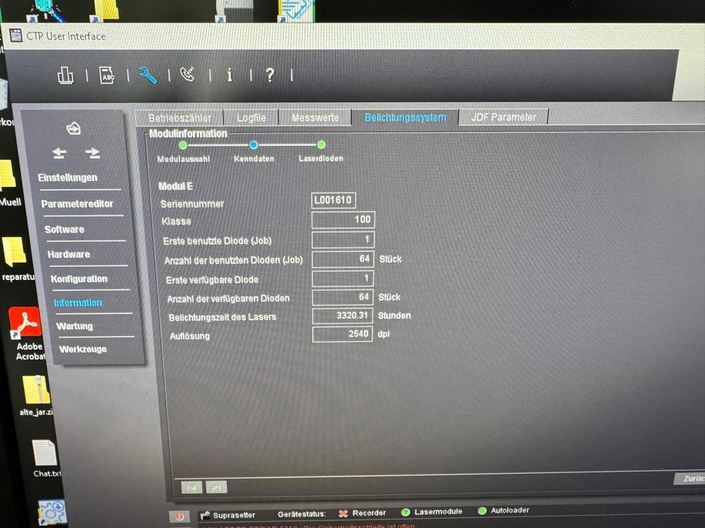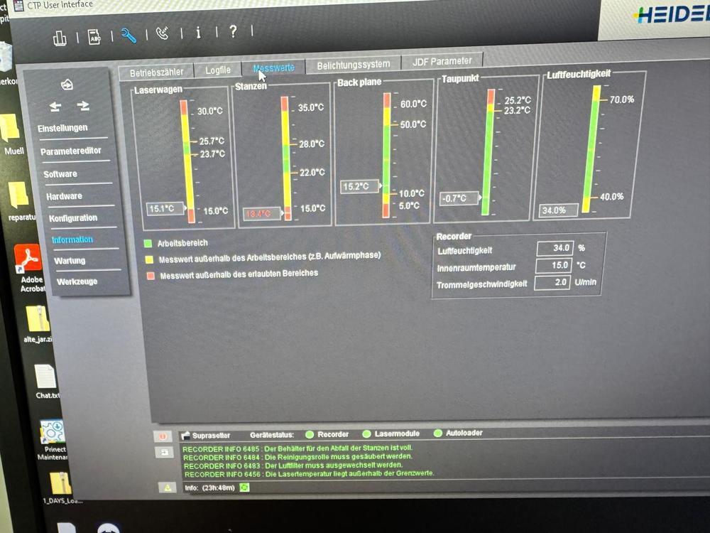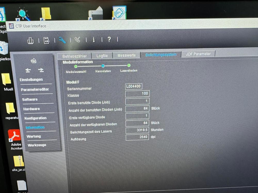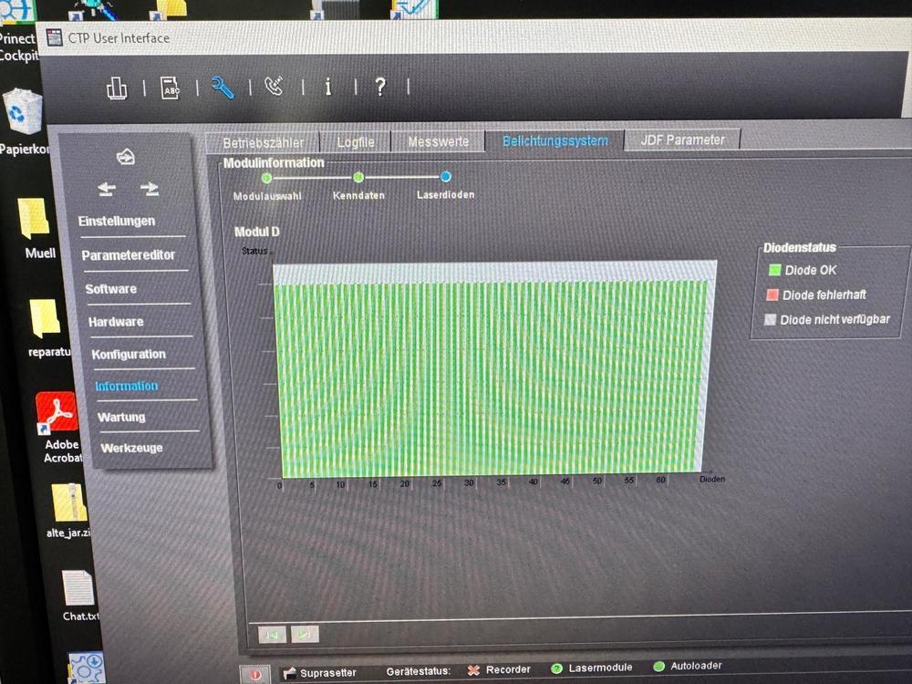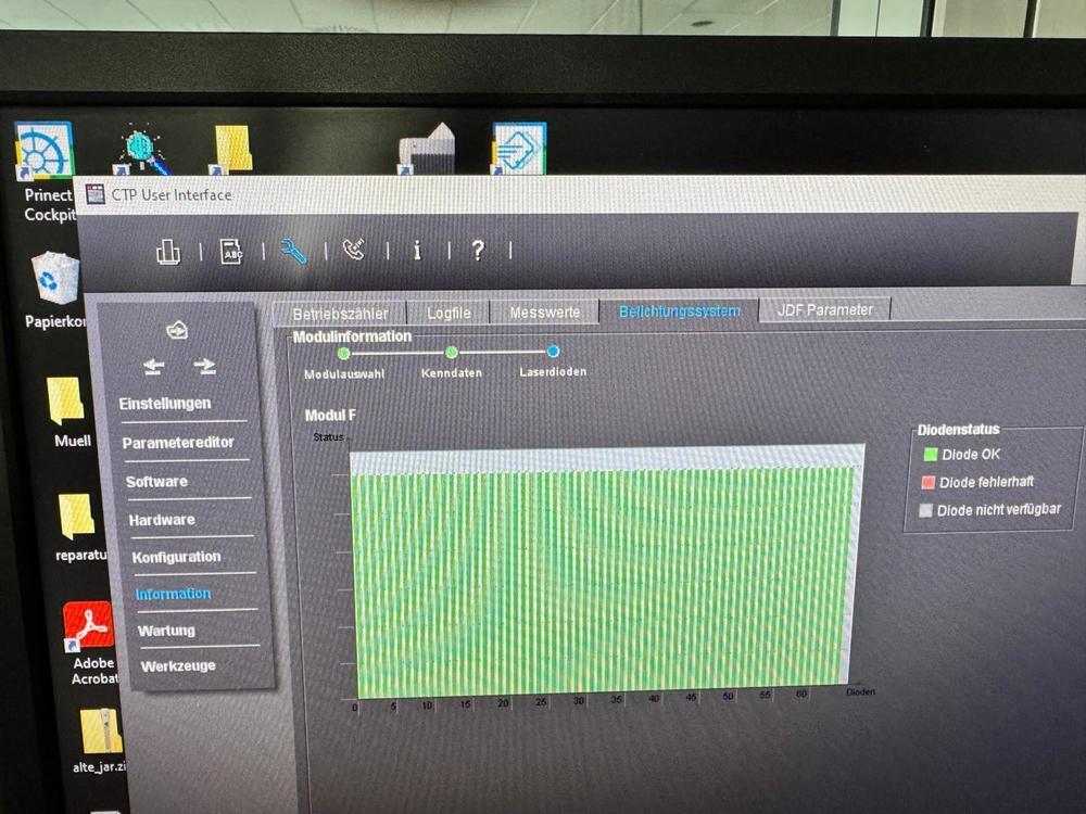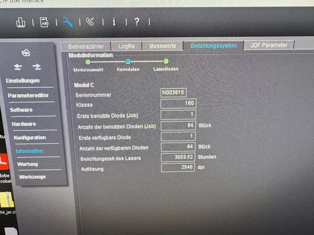 | Description: | HEIDELBERG SUPRASETTER 105<>thermal technology<>resolution 2400 - 2540 dpi<>plate thickness from 0.15 to 0.35 mm<>Multi Cassette Loader 105<>automatic stacker<>RIP<>MetaShooter<>plate processor Glunz & Jensen 85 <>Plate stacker stacker |