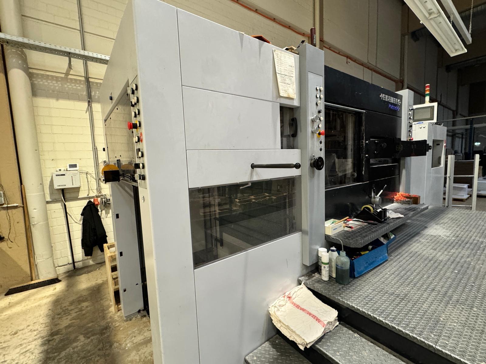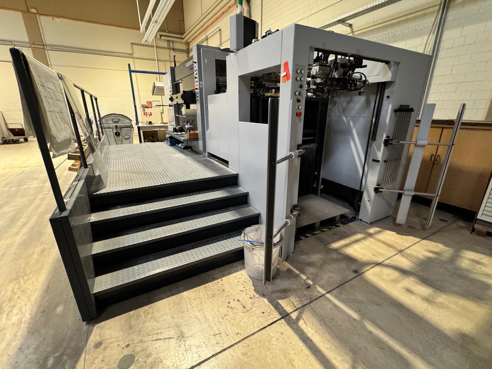 Counter approx: 38 mio. or 21.000 hours<>Centerline<>Non-Stop Feeder<>Stripping Unit<>Non-Stop Delivery<>Chases<>Cutting plates; 4+1 mm<>Table for presetting of striping tools<>Largest Sheet Size X : 750 mm<>Largest Sheet Size Y : 1050 mm<>Min. Sheet Size X : 370 mm<>Min. Sheet Size Y : 400 mm