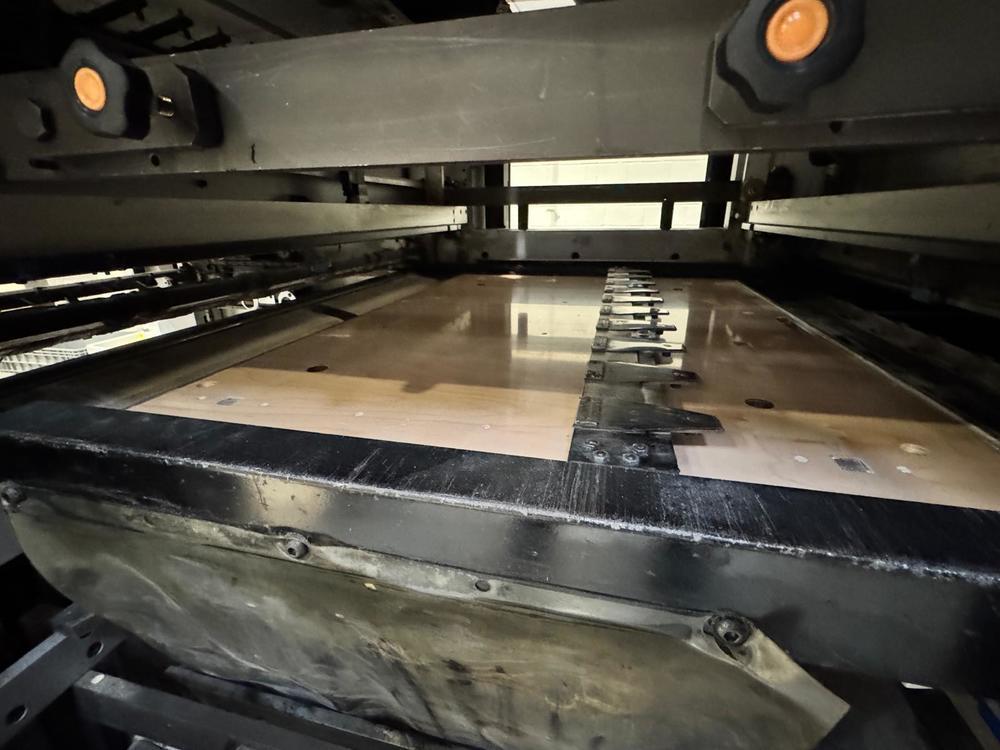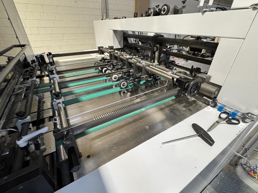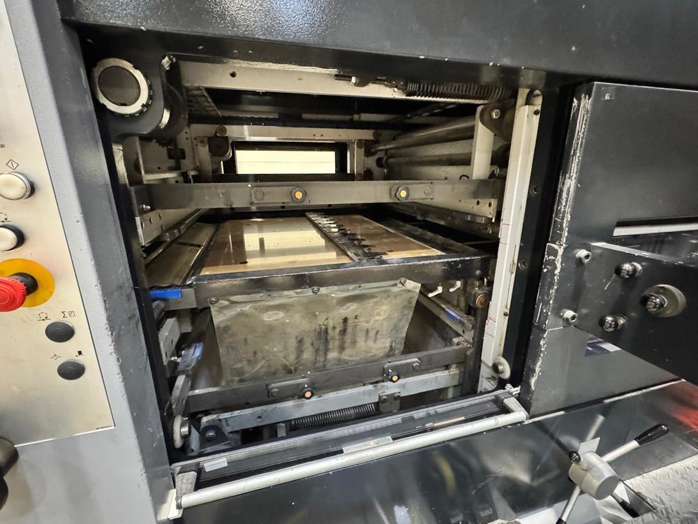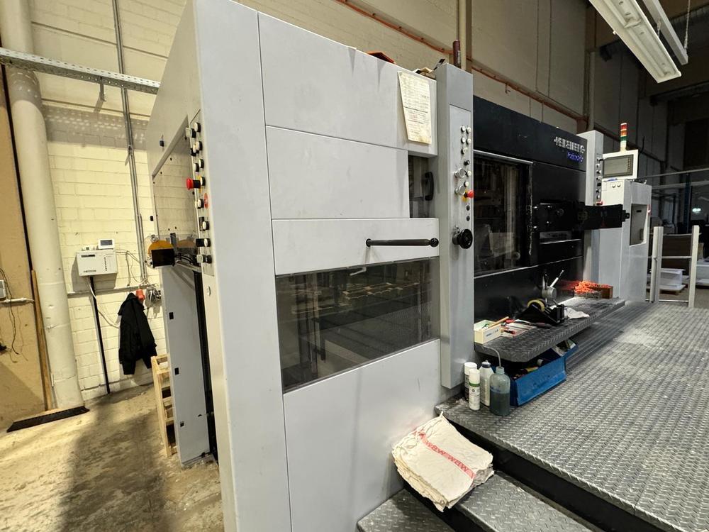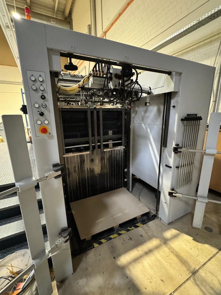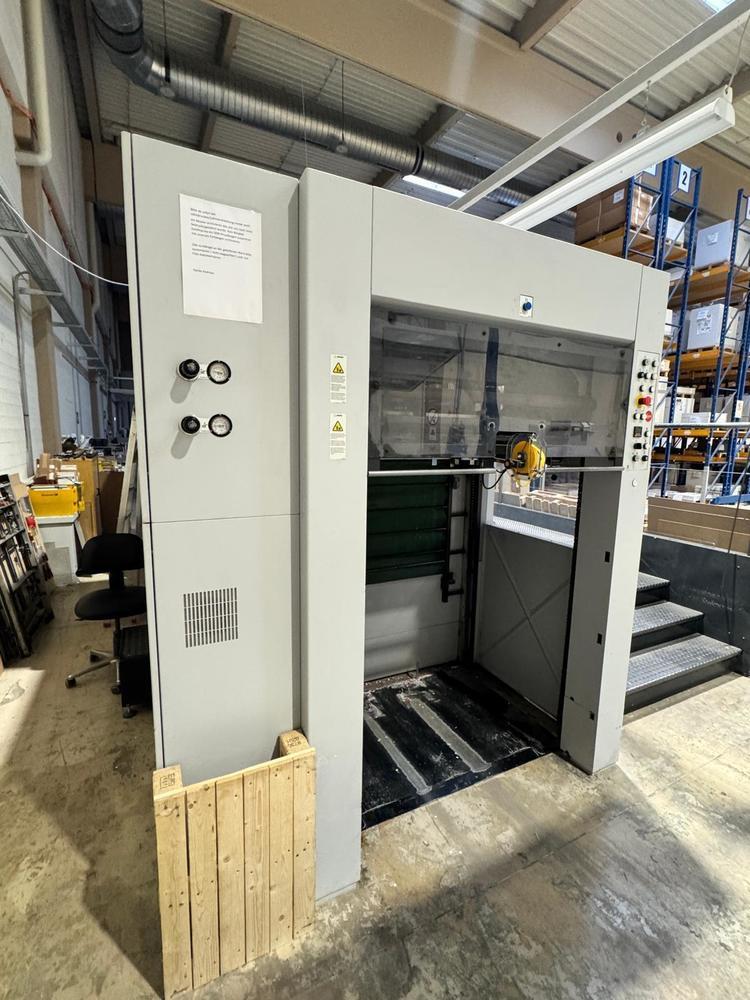 | Description: | Counter approx: 38 mio. or 21.000 hours<>Centerline<>Non-Stop Feeder<>Stripping Unit<>Non-Stop Delivery<>Chases<>Cutting plates; 4+1 mm<>Table for presetting of striping tools<>Largest Sheet Size X : 750 mm<>Largest Sheet Size Y : 1050 mm<>Min. Sheet Size X : 370 mm<>Min. Sheet Size Y : 400 mm |