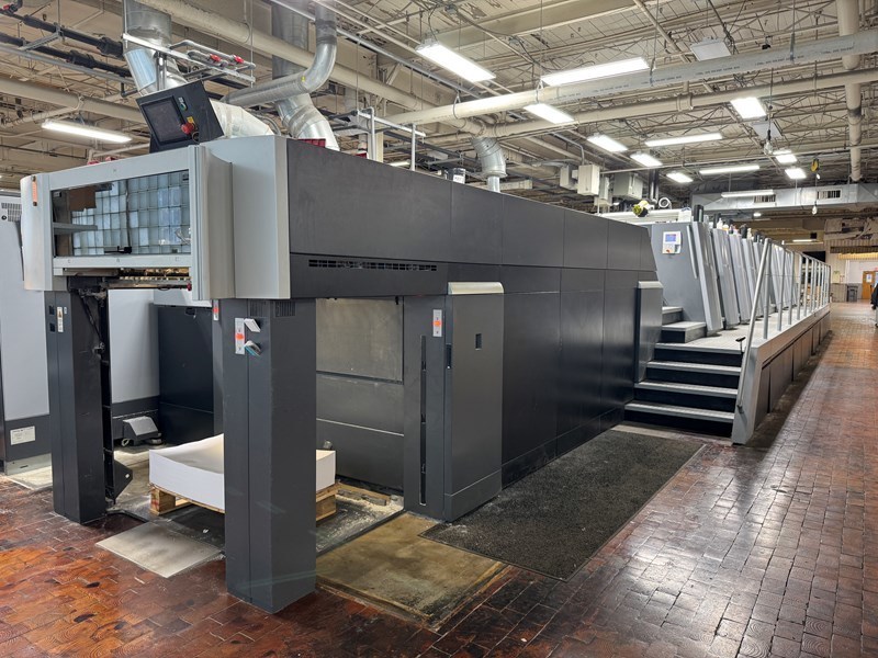 Includes CP 2000 w/ Wallscreen, <>Prinect InPress color control and Instant Gate, <>Benford and IST UV drying, <>7 lamps in total, <>Gardner Denver air cabinet, <>Ink Star, <>Coating Star dual coating pump. <>15,000 iph.<>Autoplate Pro (full automatic plate loader)<>Heidelberg DryStar Infra red dryer<>CombiStar refrigeration and recirculation<>Preset Plus in feeder and delivery<>Automatic blanket, roller and impression-cylinder washing device
