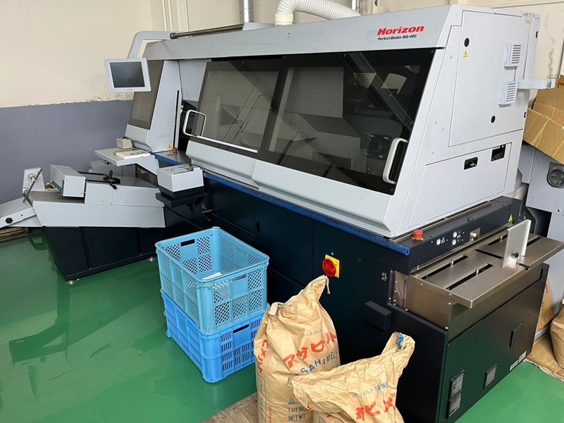 Mod. BQ-480 EVA<>• Main clamp book width<>• Milling head<>• Spine glue length<>• Cover size & scoring<>• Cover nipping unit<>• Book delivery width<>EVA hotmelt roller type spine gluing tank<>EVA hotmelt side gluing discs with glue length cut-off<>Improved delivery table for gentle handling of thicker or PUR bound books.<>Including accessories, tools & manuals.<>Accessories:<>Auto calliper book measuring device, for quicker make-ready.<>Hand feeding station<>Milling and roughening station