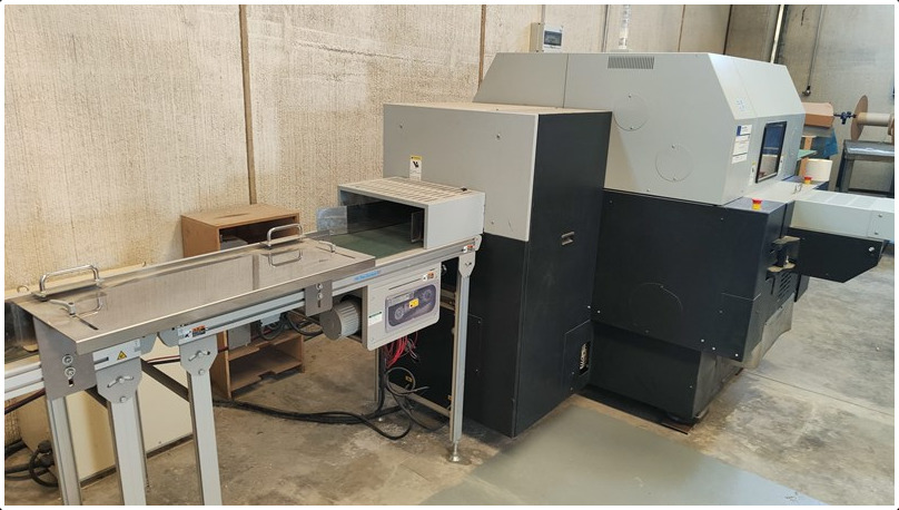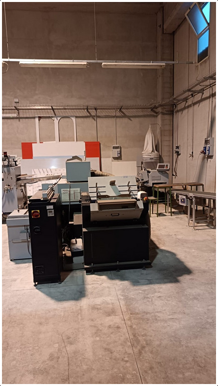 Mod. CABS 4000-VF EVA Line<>‘Computer Aided Binding System’ designed for bind-on-demand production.<>‘V’ = Variable, book on demand capability<>‘F’ = Flap cover feeding capability<>Comprising:<>Tecnograf ‘MettaLibro’ Book block feeder<>SB-09VF Variable binder with hand feed station and 9 clamps<>LCD screen operator console for various functions/set-ups<>‘PX-Core’ Central control computer system<>SI-15 book block sensor unit for auto system set-ups & quick book size/thickness make-ready<>S-09S Automatic feed unit<>Auto cover score & register settings from data input<>Milling & roughing station with DB-15 milling blower unit<>PM-20II EVA hot-melt pre-melt unit<>MU-09 EVA hot-melt spine glue unit with side glue discs<>Pile rotary grip cover feeder with double sheet detection<>LD-09 lay-down delivery belt<>PP-101 pre-stacking unit with approx. 9m conveyor to;<>HT-110 Automatic three knife trimmer<>HC-110 manual feed conveyor to use trimmer as standalone<>LCD screen operator console for various functions/set-ups<>Quick book size/thickness make-ready unit<>Dust bag extraction unit<>Roller delivery unit<>Including tools, accessories & manuals.