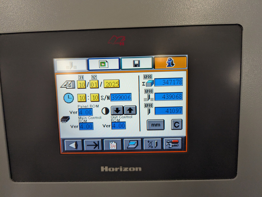| Description: | - OPERATION: STACK AND CUT UP TO 10 COPIES AT THE SAME TIME AND FULL AUTOMATIC<>- CUTTING PROCESS: KNIFE WORKS IN TWO DIRECTIONS -> CUTS WITHOUT DAMAGES<>- CONVEYOR: STACK TRAY OF THE CUT BOOKS<>- SAVEABLE JOBS: 40 MEMORIES FOR REPEAT ORDERS<>- SETTING: PRECISE ADJUSTMENT VIA TOUCH SCREEN<>- CONSTRUCTION: LONG-LIVED<>- SPACE REQUIRED: LOW<>- NUMBERS OF BOOKS: SMALL AND MEDIUM JOBS |