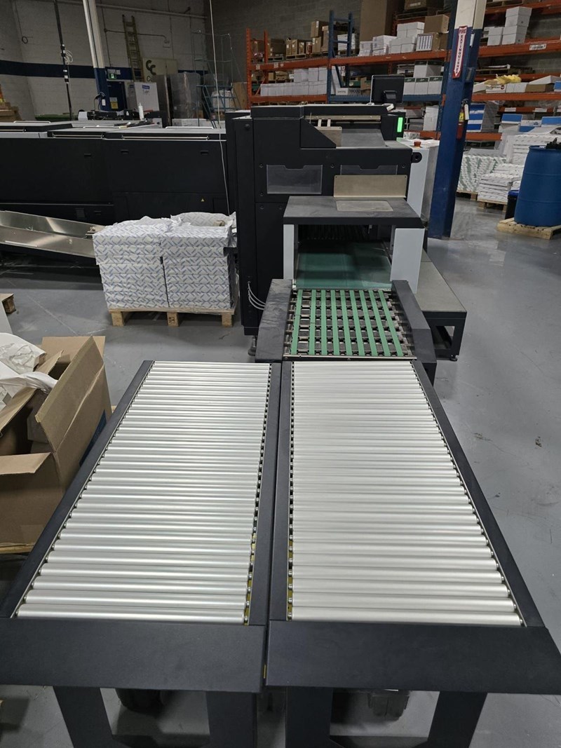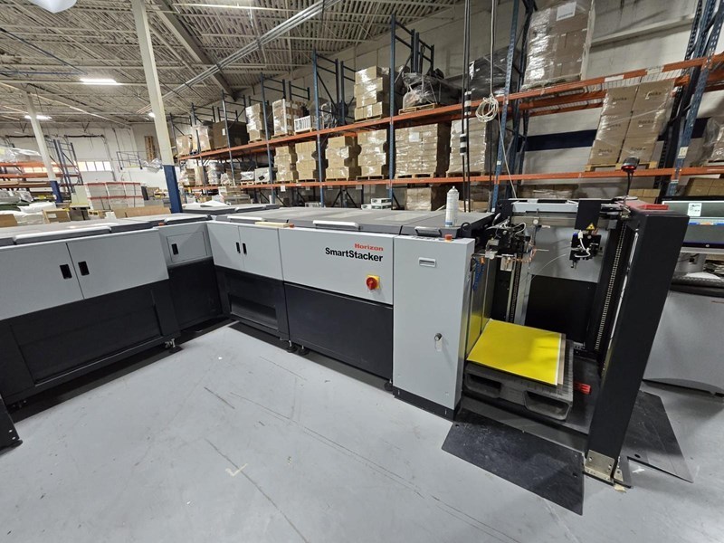 1.1m books on the counter!<>The latest, innovative way to process B2 (20” x 29”) digitally printed sheets to finished format size.<>Features:<>Near-line operation with Sheet Feeder – can be operated as a near-line system.<>Newly designed sheet feeder accommodates B2 (20” x 29”) sheets at up to 4,500 sheets per hour.<>Finishing Line Controller (FLC) controls all setup and operation of the SmartStacker by use of JDF workflow.<>Can serve multiple HP Indigo 10000 Digital Press units and other HP Indigo presses.<>Can be connected directly inline to an HP Indigo 10000 Digital Press.<>Print submission, print, and sheet processing performed without any manual operation for higher sheet integrity & efficient workflow.<>Can be connected with an Horizon signature folder, saddle-stitcher or perfect binder to achieve total finishing automation.