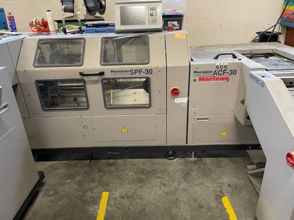 | Description: | 1 x BC-20<>1 x ACF-30 Accumulator Folder<>1 x SPF-30 Stitcher Unit<>1 x HTS-30 Trimmer Unit (with center cut for 2-up production) |