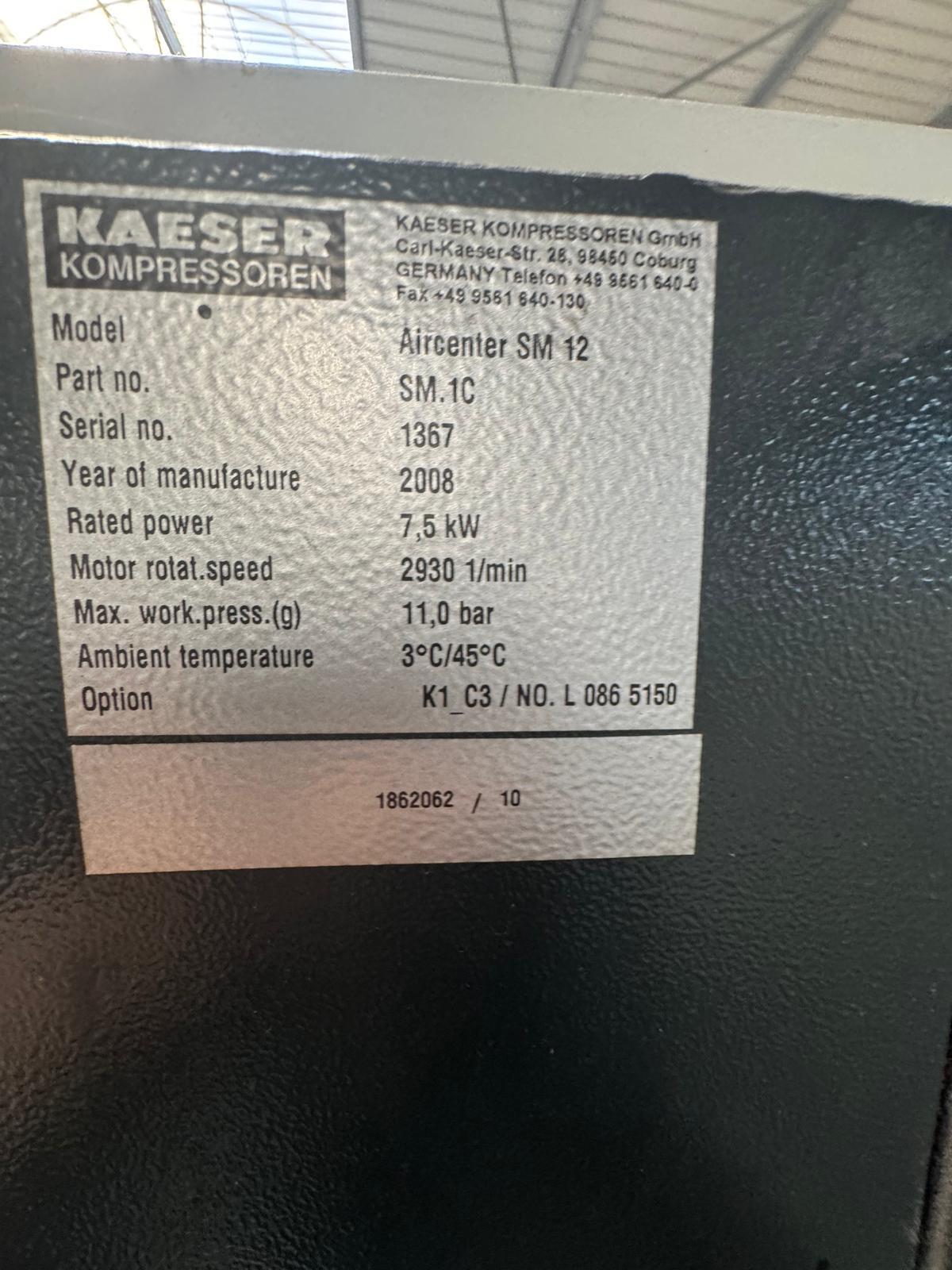 KAESER AIRCENTER SM 12 with SIGMA CONTROL<>Screw Compressor with refrigeration Dryer and compressed air Tank<>Control: Sigma Control Basic<>motor rotation.speed 2930 1/min<>max. work.press(g). 11 bar<>ambient temperature 3C/45C