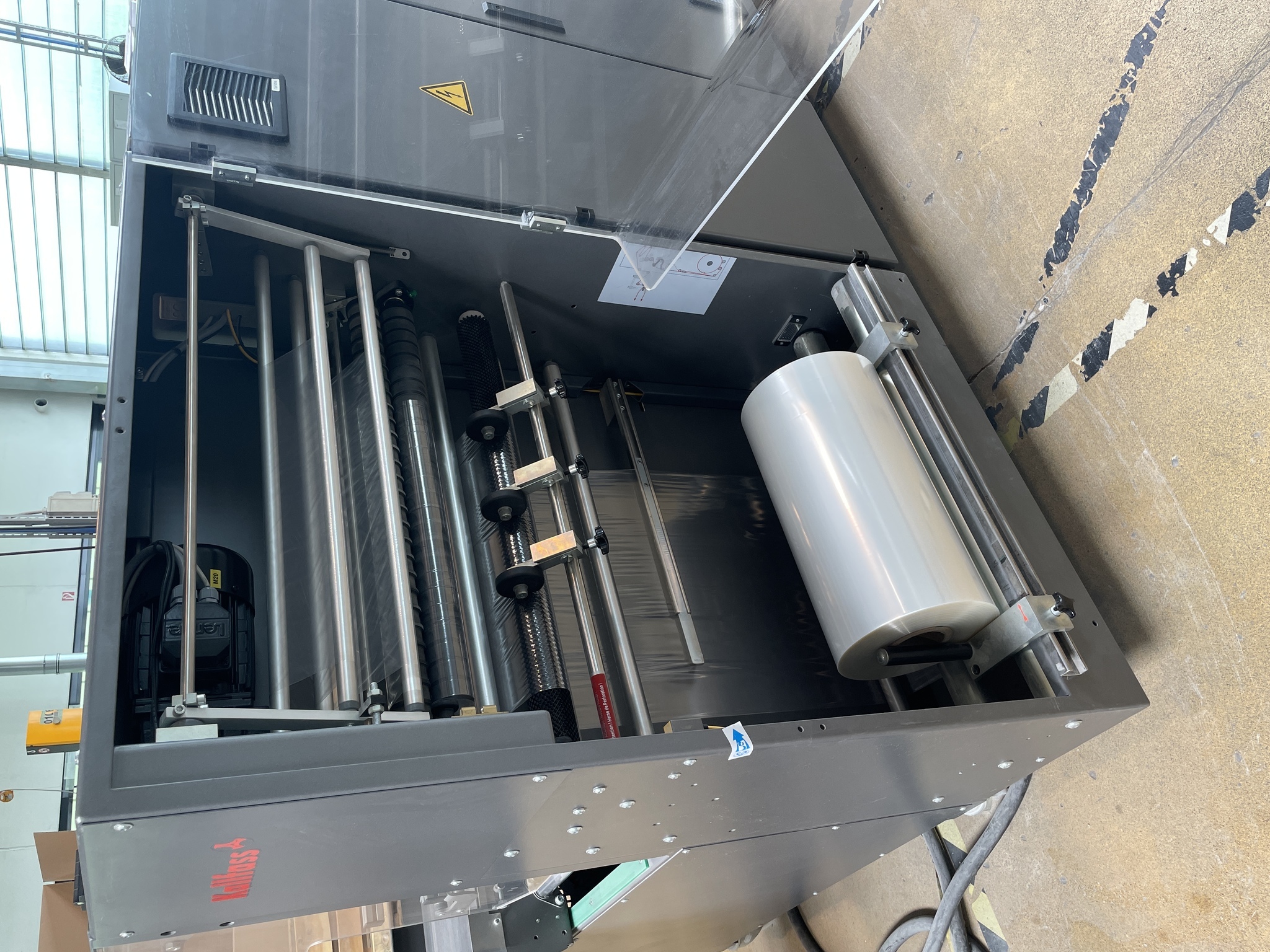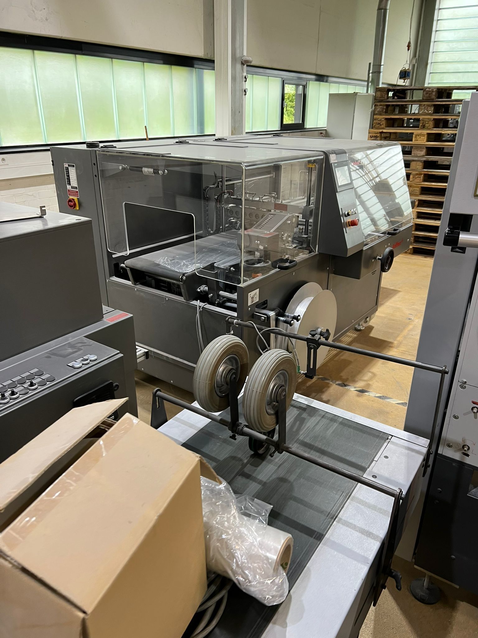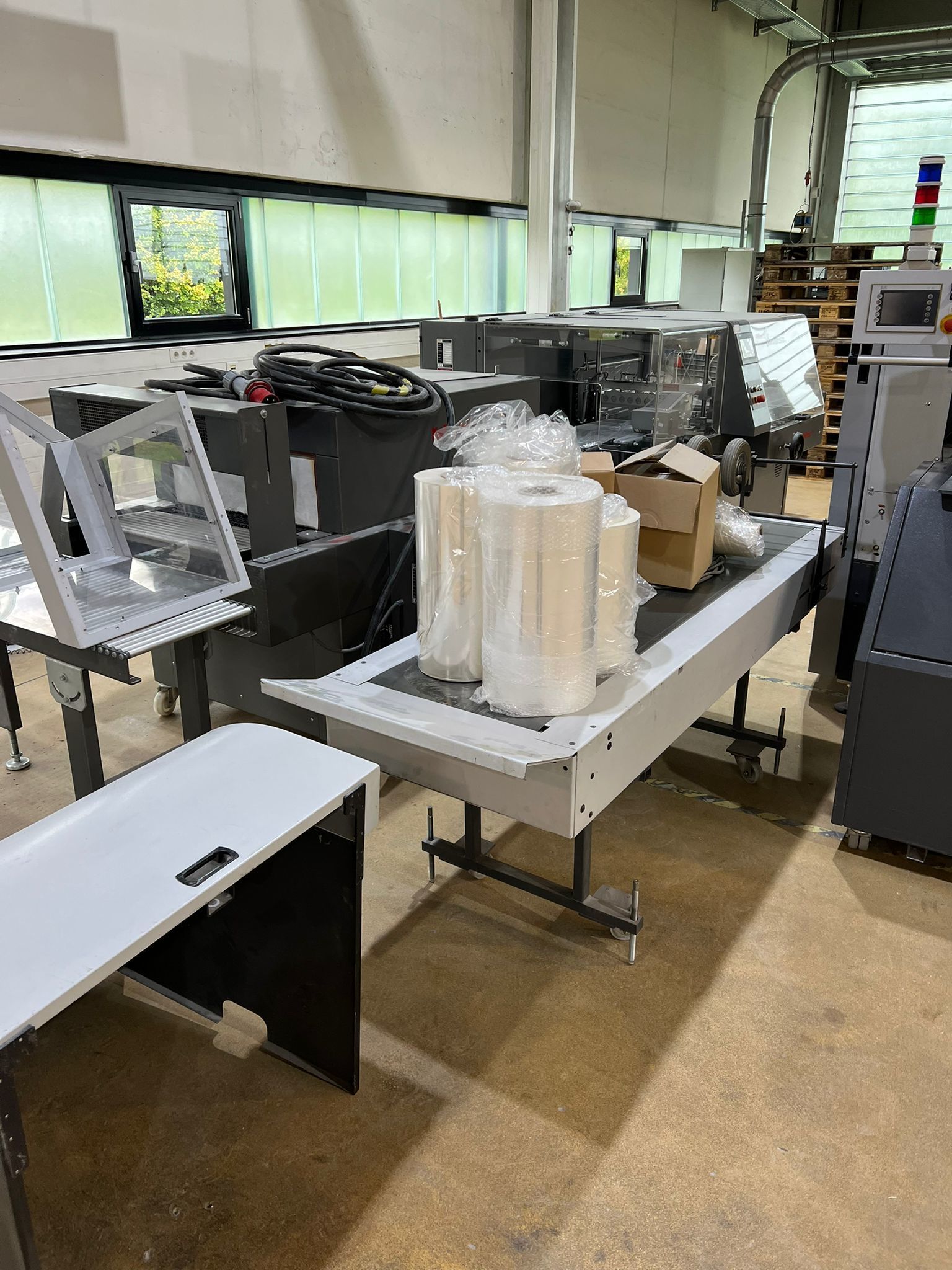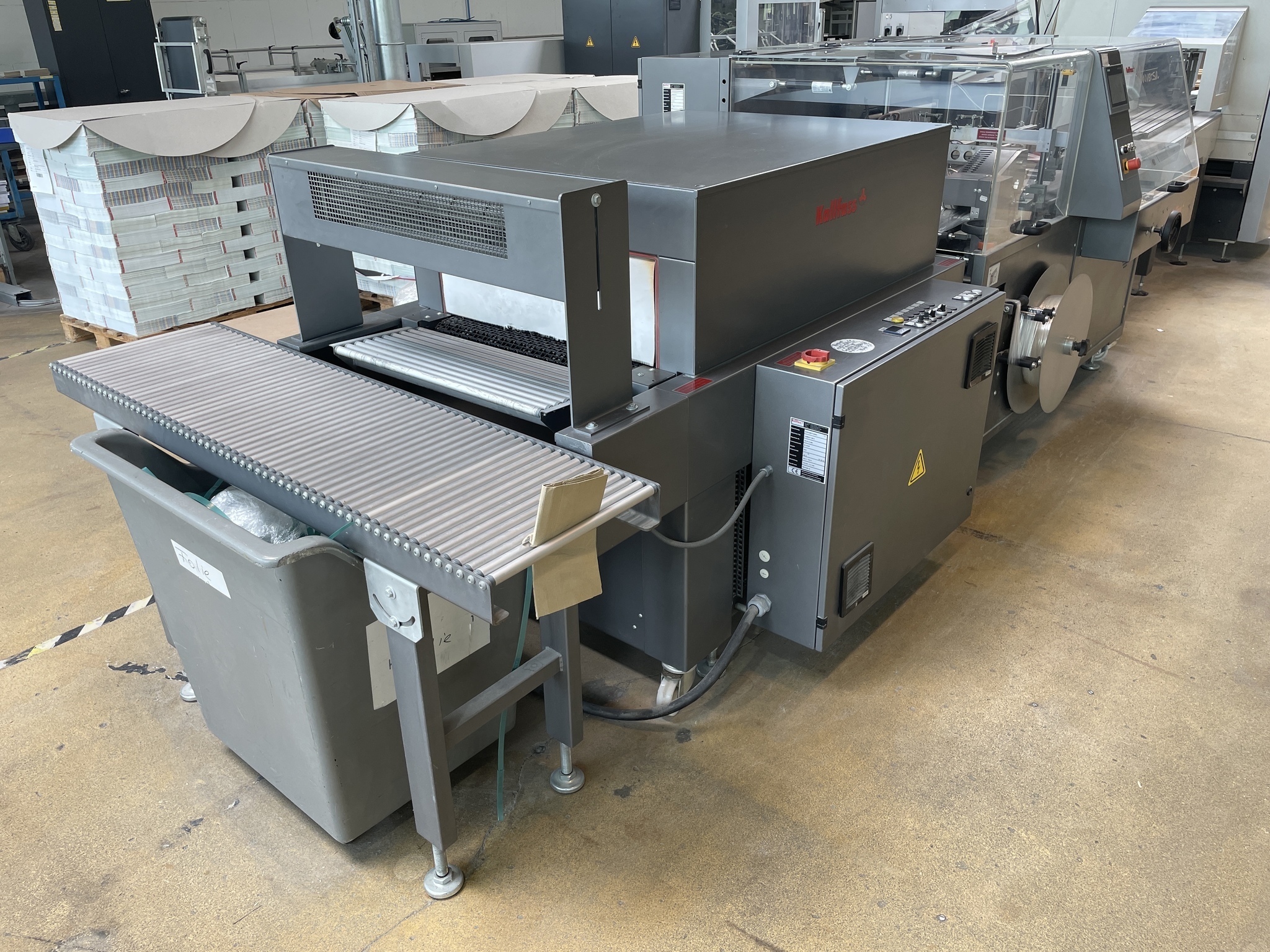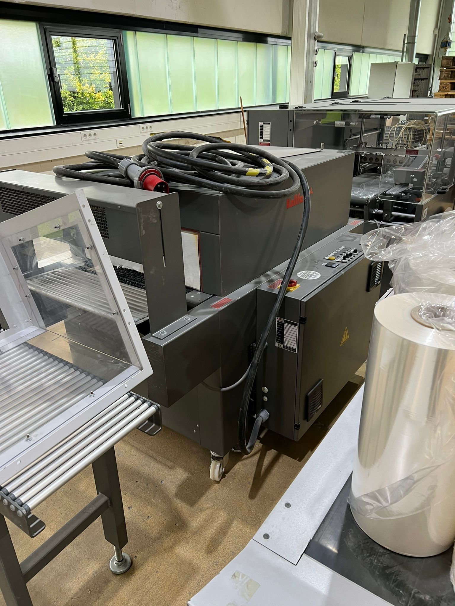 KALLFASS fully-automatic Side Sealer Universa 500T<>Technical data:<>Cross seal bar, length - 500mm<>Product clearance height - 200mm<>Power supply - 208 -480 Volt<>Film, center-foldedfilm - 12 - 80 <>Transport speed - 10 - 35 meter / minute<>Packaging speed, max. - 85 cycles / minute<>Power connection: 400 V three-phase current, 50/60 Hz with protective conductor<>Rated power: 3,5 kVA<>Rated current at 400 V: 5,1 A<>KALLFASS Shrink Tunnel Compact 650 S<>Technical data:<>Adjustable working height - 800 - 900mm<>Tunnel clearance width, height - 650mm, 200/400mm<>Length of the heated tunnel hood - 1200mm<>Power supply - 280 - 40 Volt<>Continuously adjustable temperature - bis 190 C<>Transport speed - 5- 17,5 meter / minute<>Installed heating capacity - 13,5 kW <>Power connection: 400 V three-phase current, 50/60 Hz with protective conductor<>Rated power: 14,5 kVA - 11,1 kVA<>Rated current at 400 V: 20,9 A + 16,0 A<>Perfect for fully automatic film packaging, this system offers proven technology at excellent value. Manufacturing companies with a broad product range, industrial services companies, and contract packaging companies benefit greatly fromm the efficient production processes and simple handling of the robust, reliable film packaging system. <>The compact shrink tunnel for small to medium formats. With the extra advantage of heat performance.