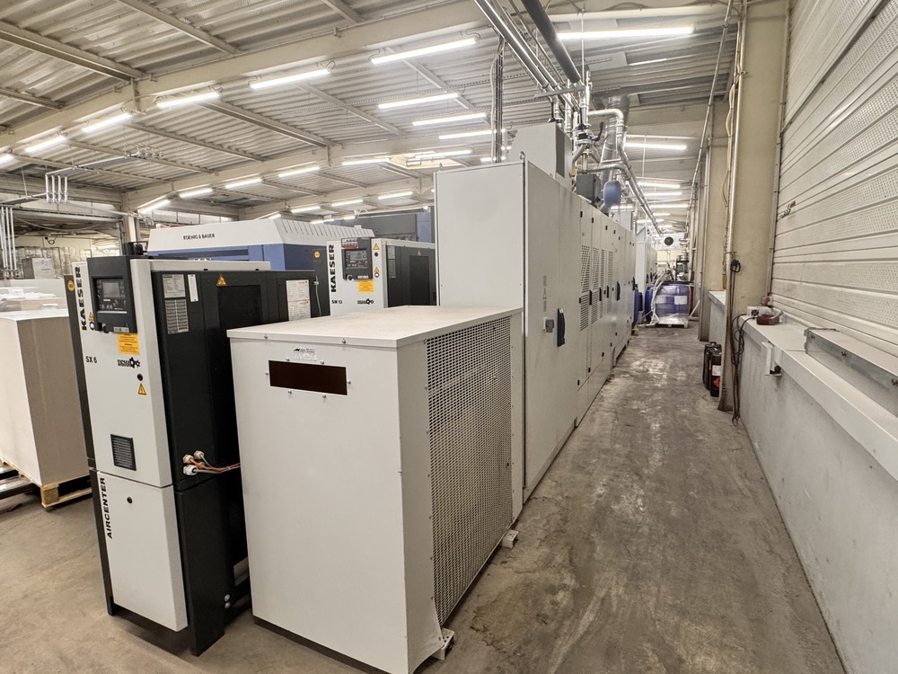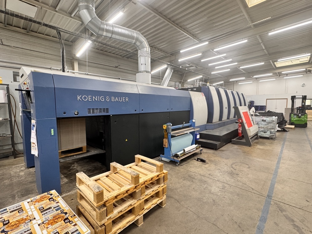 | Description: | Model Rapida 106-5+L CX ALV2 FAPC HYBRID<>Cardboard equipment<>Plastic printing equipment<>Hybrid equipment<>Ergotronic Professional console incl. Wallscreen<>Ergotronic ColorDrive<>Ergotronic LAB<>Qualitronic ColorControl<>Qualitronic Dotview<>Ergotronic ACR<>Ergotronic Imagezoom <>Intercom<>SIS<>FAPC<>Inking unit temperature control with ductor cooling<>Technotrans Beta C Hightech combi cooling device<>Cleantronic multi for convetional- and UV inks<>Cleantronic UV<>Harris & Bruno coating unit for water based- and UV varnish<>Harris & Bruno varnish supply- and cleaning device for water based- and UV varnish<>Anilox loader<>Dryer air exhaust<>EES<>Powder removal<>KBA Varidry UV / IR and Hot air dryer in delivery<>1 exchange position for UV interdeck<>1 Vardidry LED UV interdeck dryer<>1 exchange position for LED UV interdeck |