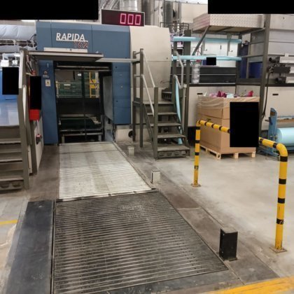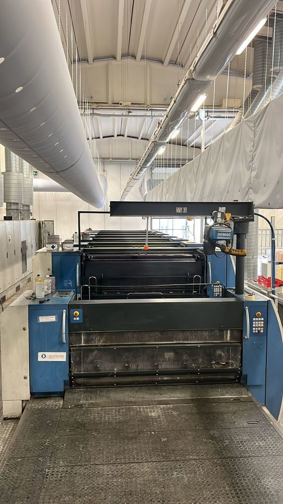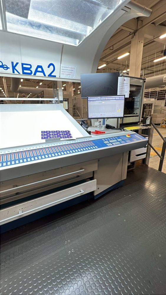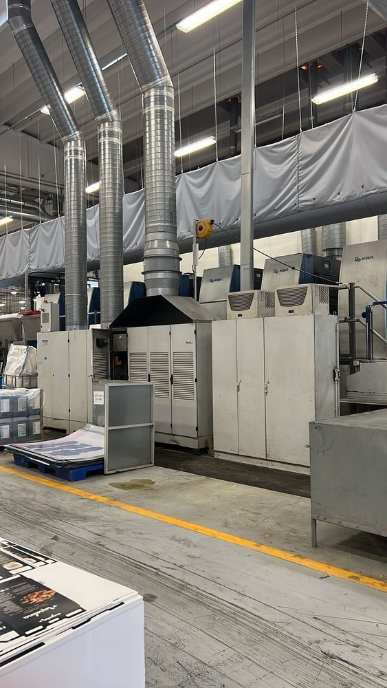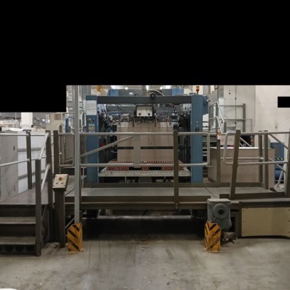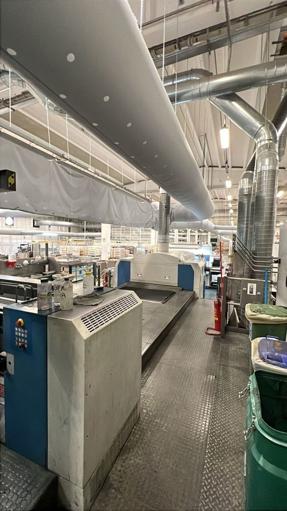 | Description: | Densitronic-S spectrophotometer<>ACR Video register control<>ALV3 - Tripple extended delivery 3900 mm<>Press raise 420 mm <> Hybride package<>Washtronic package for UV interdecks <>Sheet size: Maximum: 11200 x 1620 mm<>Field of application: 60 gr/m2 – 1.6 mm<>Mechanical speed: 13.000 s/h<>KBA Nonstop Automatic feeder with Knipser logistic system <>Kersten high performance antistatic feeder<>Dust exhaust<>Intercom<>Inking rollers for conventional inks<>Inking unit temperature control<>Technostrans Beta C High tech combi cooling device<>Ink blowers for special colours <>Washing devices for changing ink types<>Hickey Picker<>Harris&Bruno coating unit with chambered ductor blade and Anilox roller with UV varnish equipment<>Tresu varnish supply- and cleaning system for water based or UV varnish<>Nonstop delivery with rollo<>ACS Cleaning system<>Grafix UV/ IR/ Hot air dryer<>2x Grafix UV Interdeck possible to install in 4 position<>Special dryer on the delivery mod. G55K-(LH3-H3)-(LH3-H3)-H6-<>(H6)+3UVF160-CR-W<>Cip-Link online<>VARIDAMP alcohol dampening<>Colortronic (Register, Dampening and Ink Remote System Control)<>CX package for cardboard up to 1.6mm<>FAPC automatic plate change Antistatic (Kersten)<>Ink temperature control water cooled<>TECHNOTRANS combi refrigeration and ink temp control<>WEKO AP 260 sprayer<>Rietschle Air Cabinet<>2 Anilox rollers (60 and 80) 2 sets of grinding rollers, one of which is non-rubberised |