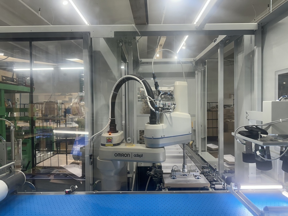| Description: | Mod. BLT 200+ BLW 200<>Sealing tape machine for automated fold-up and taping of punched or grooved box blanks up to 40 products/min.<>Fold-up station<>4 hot sealing tape applicators<>Delivery via conveyor belt<>Automated format set-up<>Coupled inline with BLW 200 Wrapper |
