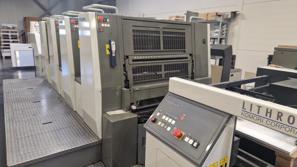 Mod. LS 429 M<>KHS-AI is an innovative productivity enhancement system developed to reduce job • <>PDC-LII •<>transfer cylinder cocking remote control • <>paper thickness preset from the control console (pressure between impression and offset cylinders) •<>BALDWIN alcohol dampening system<>Technotrans refrigeration<>PQC Print Quality Control<>SAPC Semi-automatic plate change<>Automatic blanket and ink roller wash unit<>High pile delivery<>Grafix powder sprayer<>Preset - automatic size device<>PQC-S print quality control