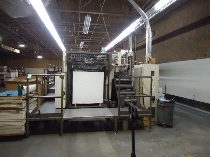 Mod. D3000R 8 <>Raised press with dance floor<>Jac Devries IR Dryer with Air knives<>Grafix Digitronic 3000 sprayer<>Comrac console on Dance floor<>Baldwin cloth blanket washers with blanket wash Elettra Fast Wash<>Ink roller cleaner<>Feeder direct load, continuous feeder<>AWS Single Zone chiller<>Semi-automatic plate change with punch bender included.<>Automatic paper thickness and format presetting.<>Blanket, roller and cylinder automatic washers.<>Inline tower coater roller type<>Condenser on the roof<>Daiymatic dampening system<>Royse unit<>Continuous delivery<>Chromed plate cylinders<>Overhauled