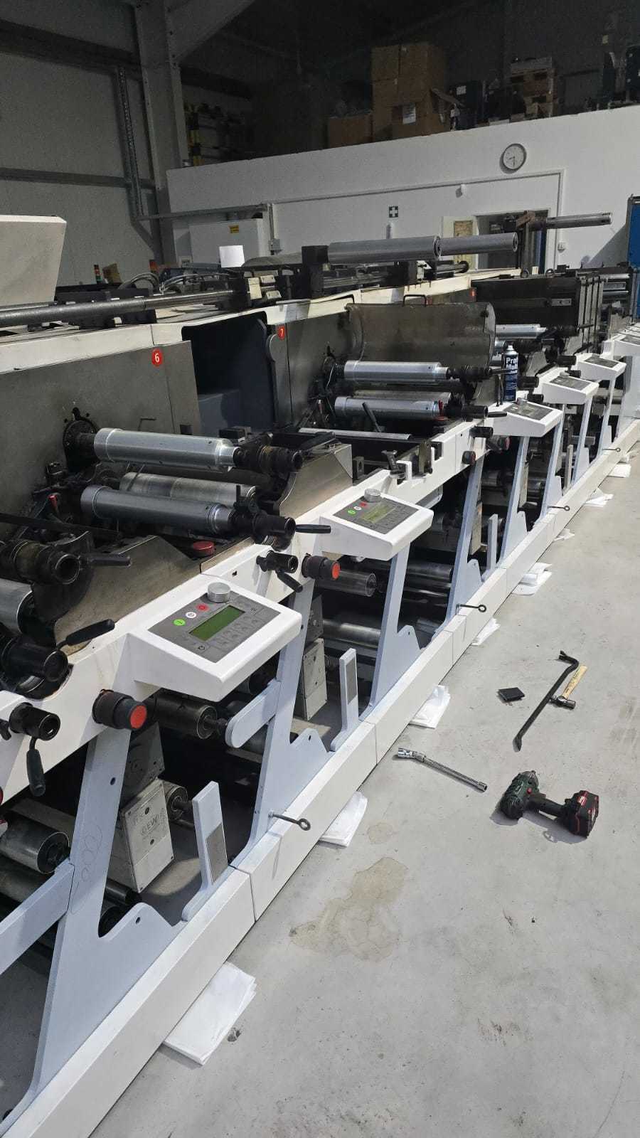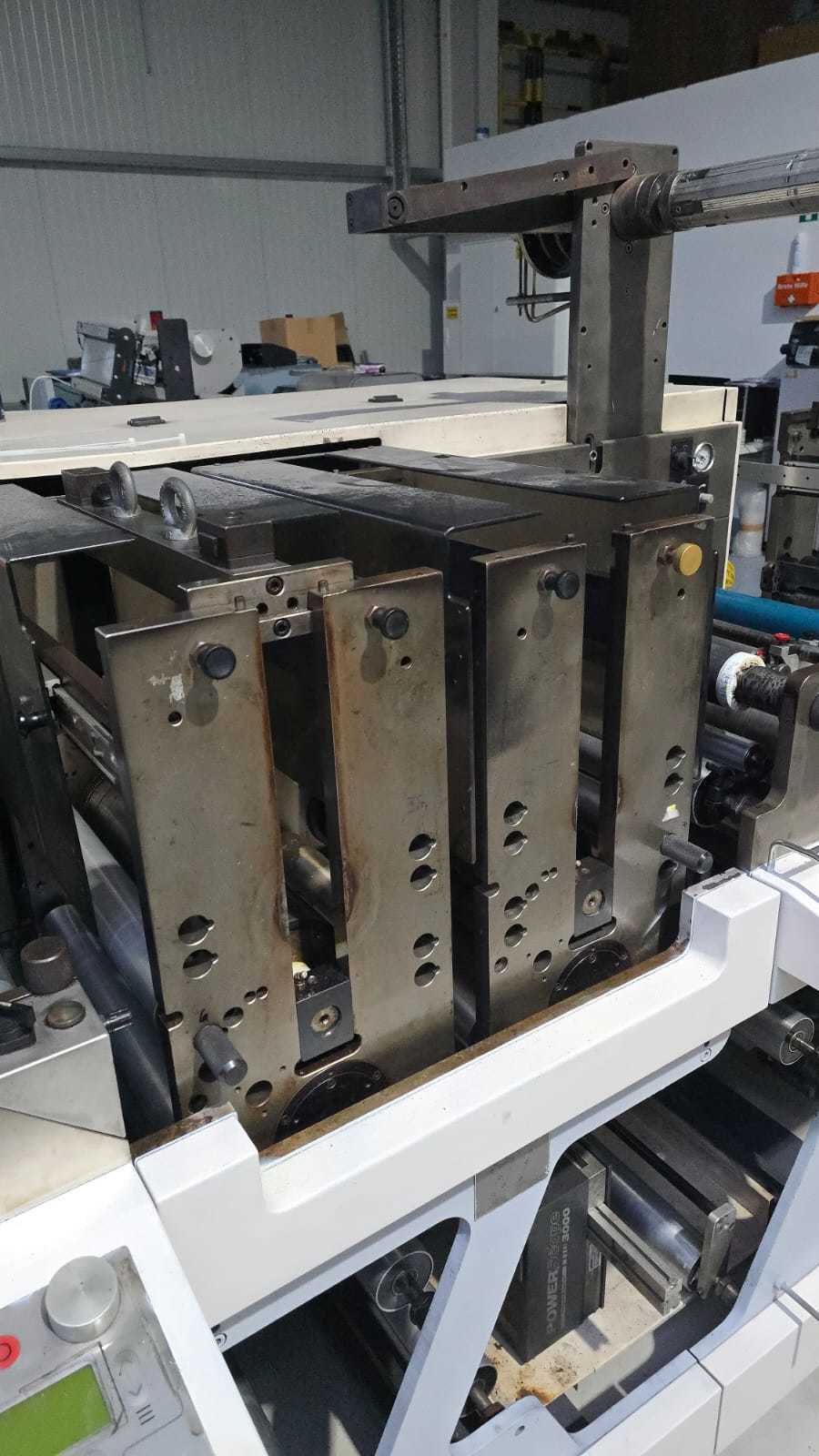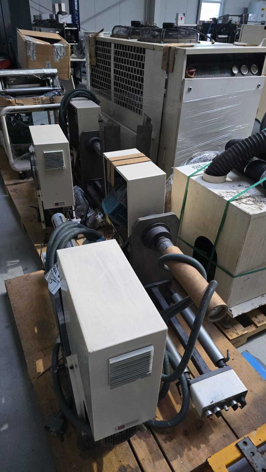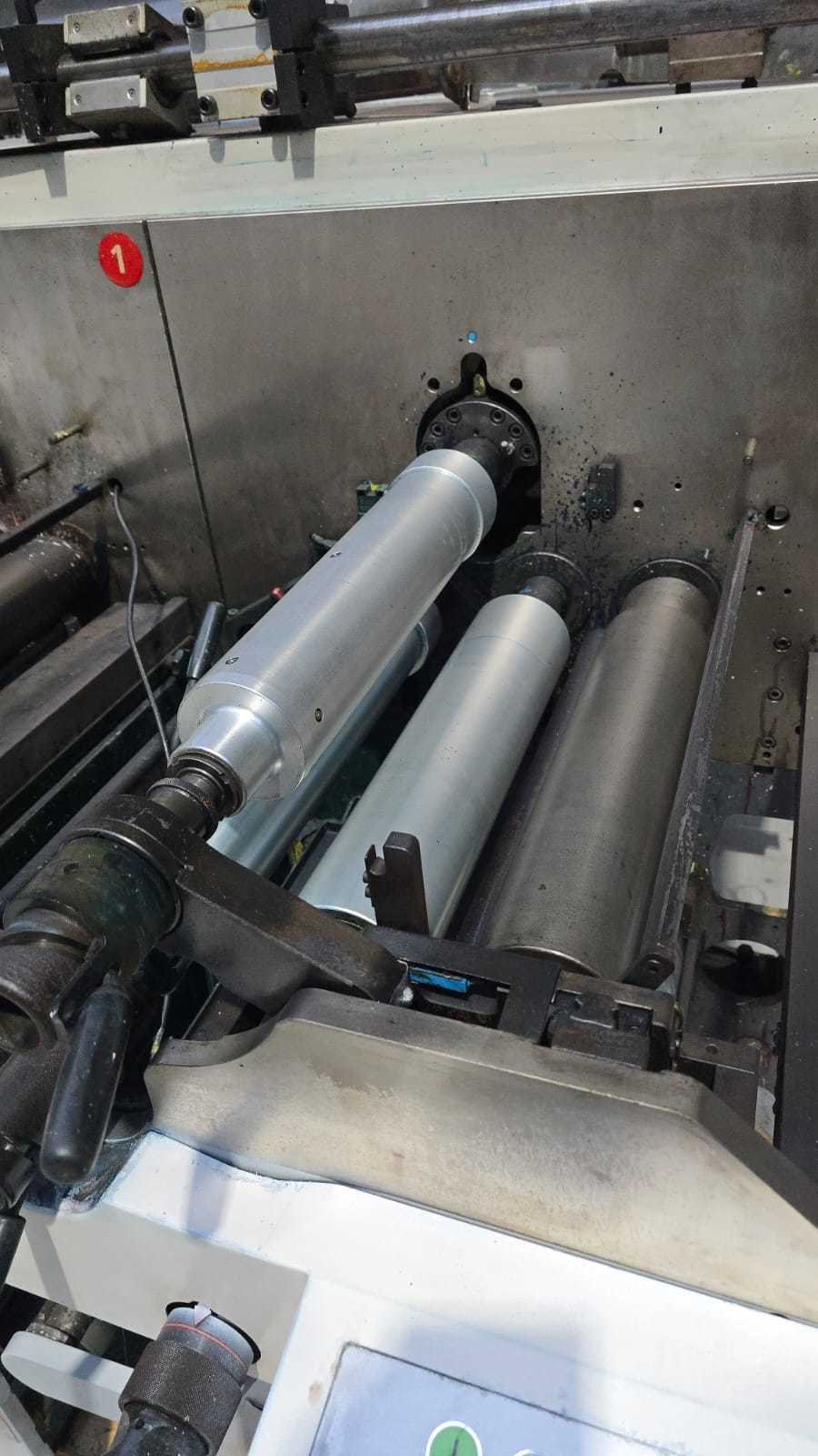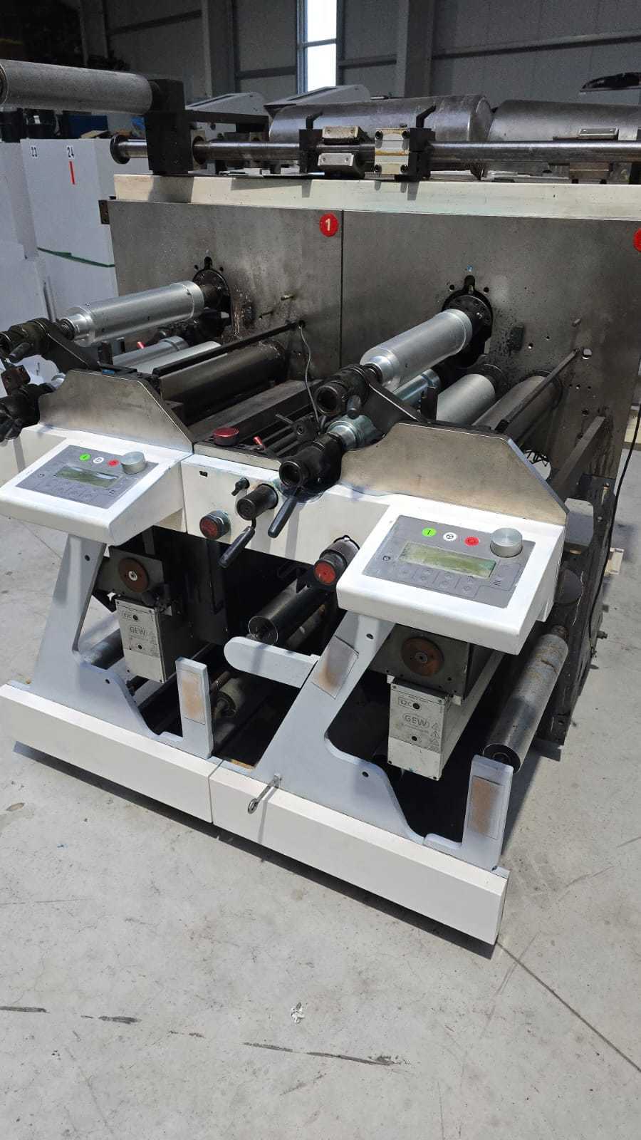 INFEED MODULE<>Rail-system<>2 Cold- Foil<>UV Lamination<>Sheeting unit<>2 Screen unit<>Print Sleeves 103<>Anilox 40<>Magnetic 10<>Corona treater<>Web cleaner<>Turn bar<>Delam / relam