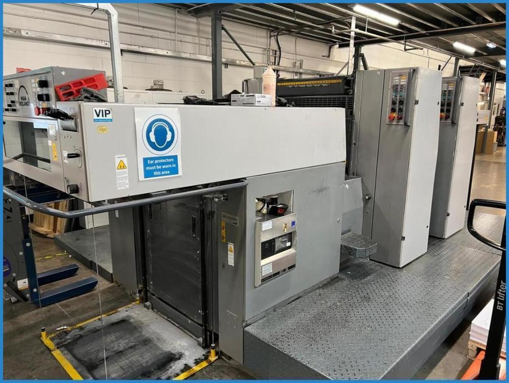 | Description: | Grafix Hitronic-S Spray powder device<>ROLANDMATIC dampening system<>RCI Ink Control Remote<>Technotrans refrigeration<>CPL- Automatic Plate Change<>Steelplate in feeder and delivery<>dismantled |