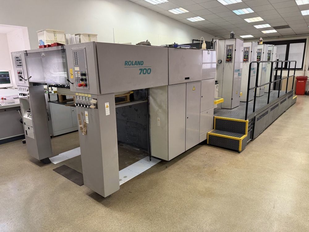 | Description: | Digital Press Console Control<>Job Card Reader<>Register remote control for circumferential-, lateral-, and diagonal register<>Automatic Sheet size setting in Feeder<>Automatic stacking correction in Feeder<>Automatic lateral stacking correction in Feeder<>Card Guide rollers at side lay<>Automatic substrate thickness adjustment<>Monitoring of sheet infeed <>Early, late and misaligned sheet control<>High-Quality surface Plate-, Blanket- and Impression cylinder<>Double sized Printing cylinder and Transferter<>Wekotron RS Powder<>Technotrans beta.d<>CompiAir Mahle Air Compressor<>ROLAND DELTAMATIC dampening system<>RCI Ink Control Remote<>MABEG non-stop feeder<>Electronic double sheet control<>Electromechanic double-sheet control<>PPL Power Plate Loading (semi-automatic)<>Automatic blanket and ink roller wash unit<>Air Glide delivery |