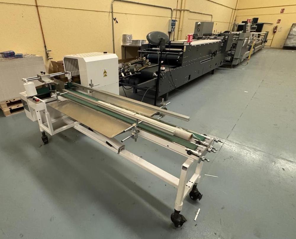 | Description: | - Flap-printed barcode inspection system, including image inspection, barcode, and QR code verification, enabling contamination control and detection of skewed die-cuts<> - Plasma treatment unit with three guns<>- Double-sided tape applicator <>- Hot melt gluing system with 3 guns<>- 450 output stacker<>Technical specifications:<>- Board capacity: up to 800 g/m²<>- Corrugated board: flute types A, B, E<>- Maximum speed: 400 m/min<>- Slow speed: 10 m/min<>- Maximum folded box thickness: 12 mm<>- Material width: 1100 mm<>- Power consumption: 31.2 kW<>- Air pressure: 6 bar<>- Compressor capacity: 10 m³/h<>- Air tank volume: 60 L<>- Dimensions (L × W × H, depending on configuration): 15,000 × 1,600 × 1,660 mm<>- Net weight (depending on configuration): 7.6 T |