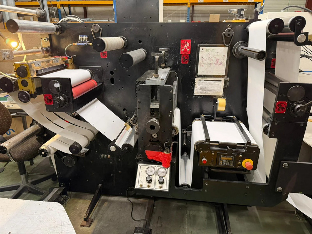 | Description: | Counter: 8400 hours <>Unwinding unit<>Die cutting unit (magnetic cylinders can be used with the machine)<>Slitting unit (knives/counter-knives)<>Turret rewinding unit<>76 mm / 40 mm / 38 mm / 25 mm shaft |