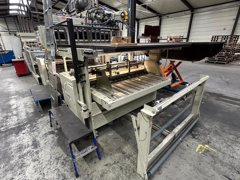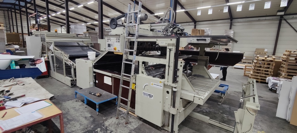 | Description: | 6 m - Automatic feeder for printed sheets ( 100-800 g/mm2)<>4R - Belt feeder for board material ( (From 350 g/m2) 2.5 mm to 7.5 mm)<>APS Automatic stacker with pressing belt<>A-1 laminating machine |
